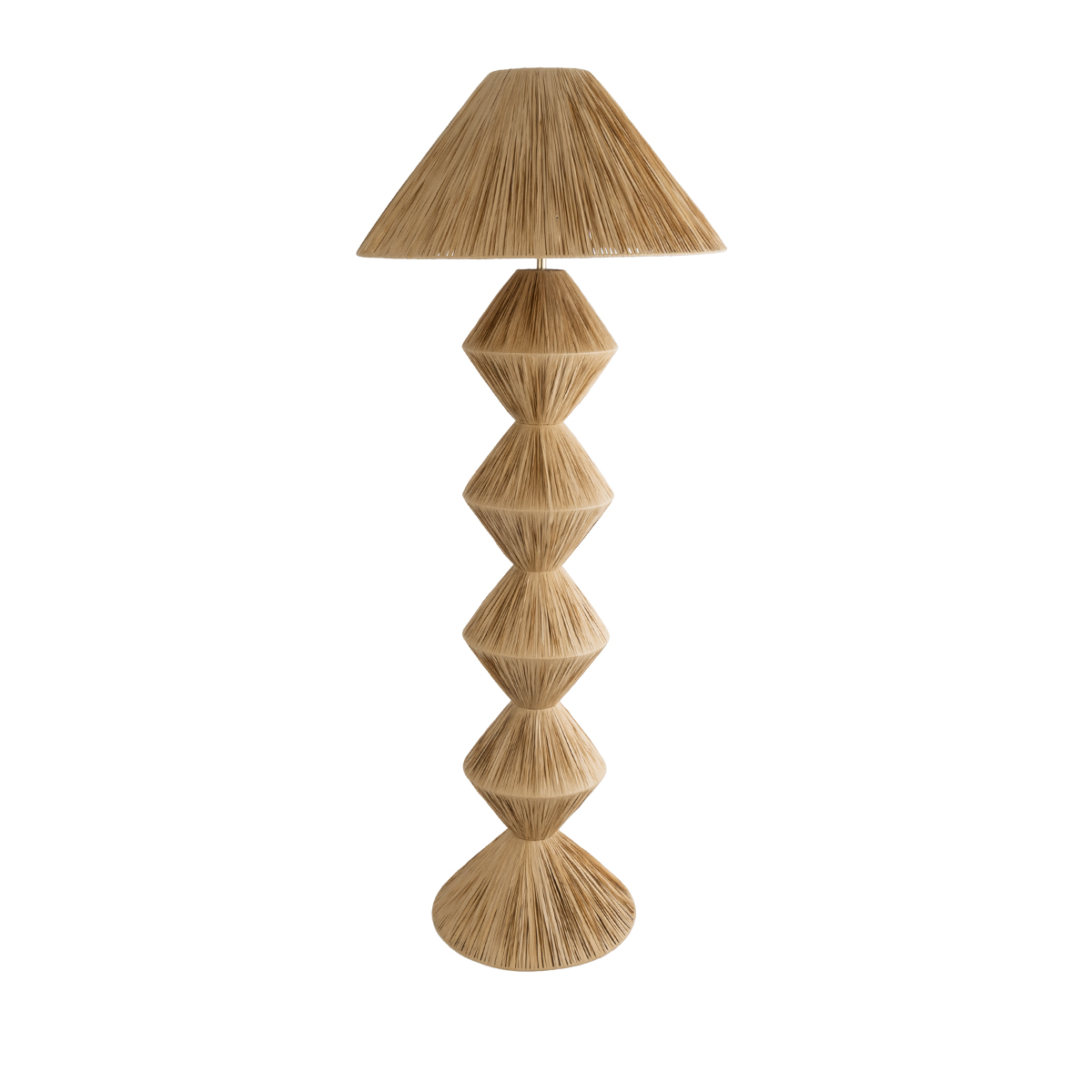 GloboStar® LUANA 02108 Boho Επιδαπέδιο Φωτιστικό Μονόφωτο 1 x E27 IP20 Μπεζ Raffia - Μ60 x Π60 x Υ150cm
