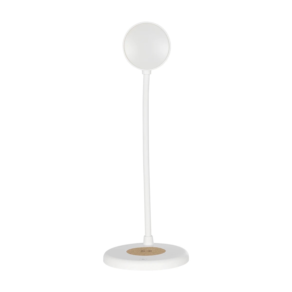 GLOBOSTAR® LUCORA 76555 Μοντέρνο Επιτραπέζιο Φωτιστικό Γραφείου με Ασύρματη Φόρτιση 10W 2A & 4W Bluetooth Ηχείο LED 3W 300lm 120° DC 5V με USB-C IP20 Ρυθμιζόμενο Λευκό CCT με Αφή 2700K/4500K/6000K Dimmable - Sanan SMD Chip - Λευκό - Μ12 x Π12 x Υ32cm - 2