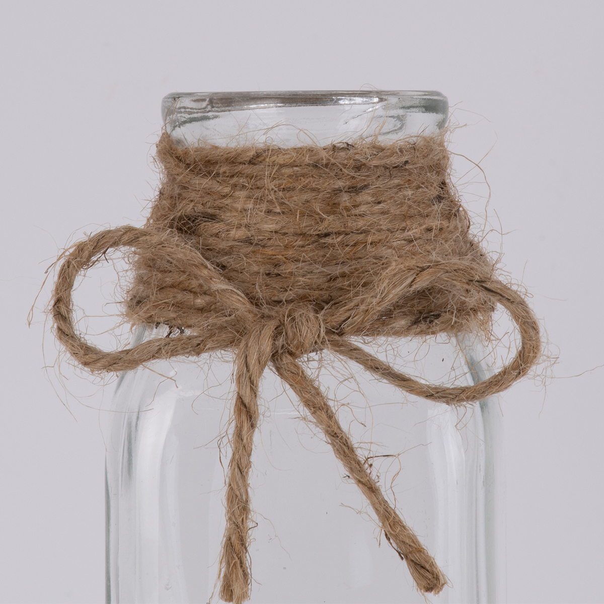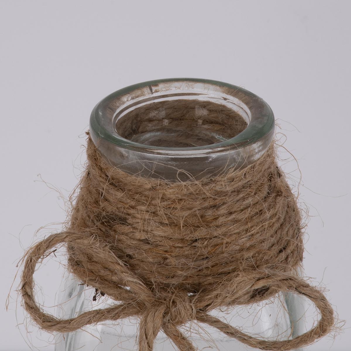GloboStar® LUCY 35609 Διακοσμητικό Βάζο Γυάλινο Διάφανο με Σχοινί Φ6 x Υ15.8cm