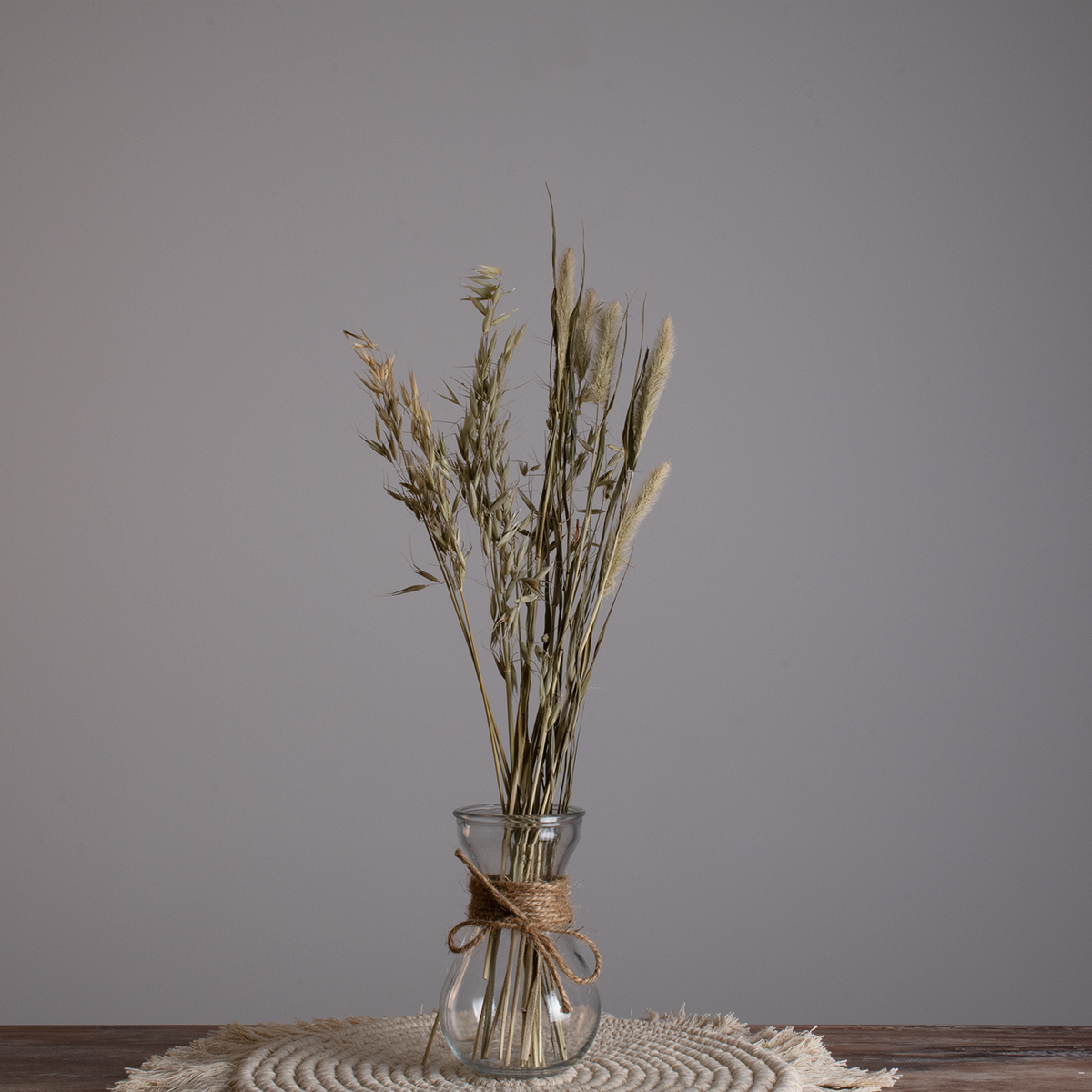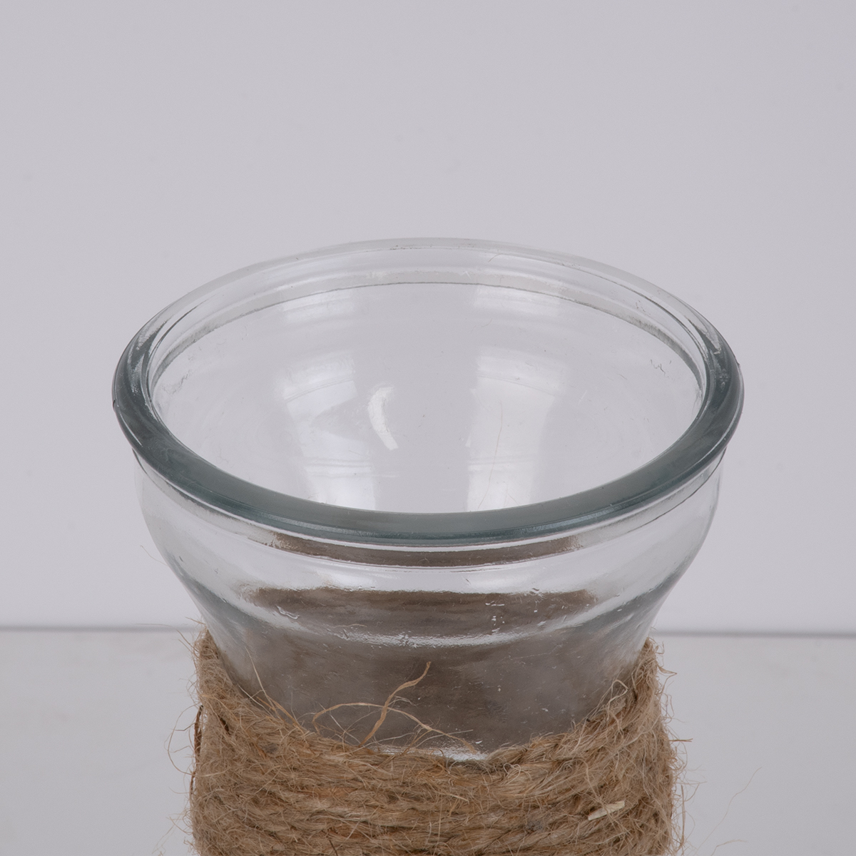 GloboStar® LUCY 35610 Διακοσμητικό Βάζο Γυάλινο Διάφανο με Σχοινί Φ8.8 x Υ13.8cm