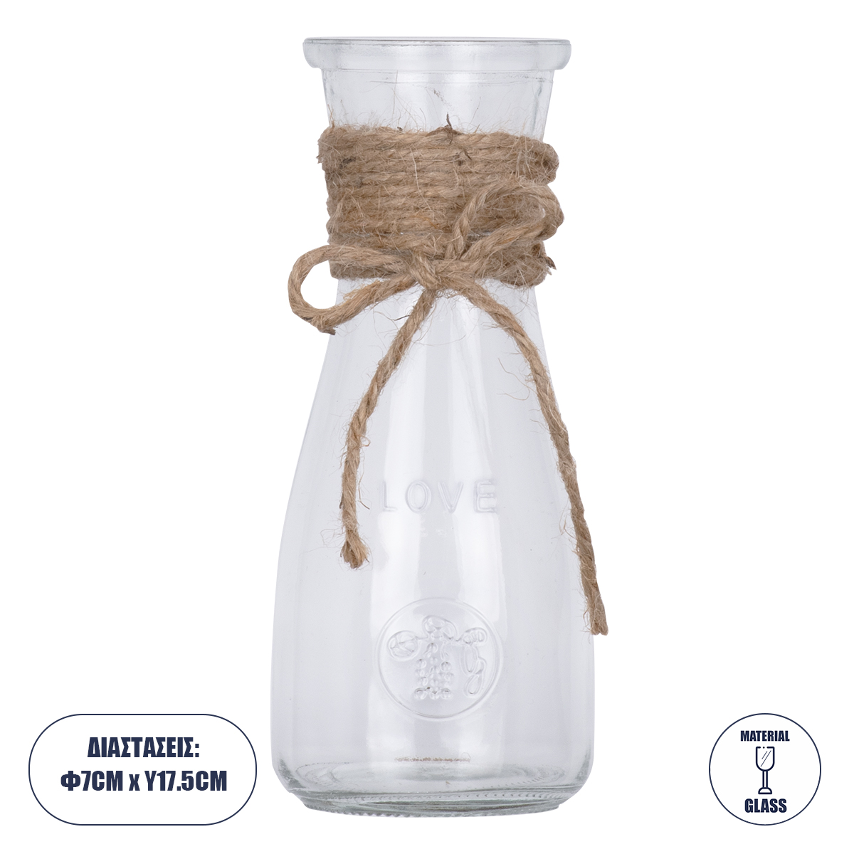 GloboStar® LUCY 35611 Διακοσμητικό Βάζο Γυάλινο Διάφανο με Σχοινί Φ7.3 x Υ17.5cm