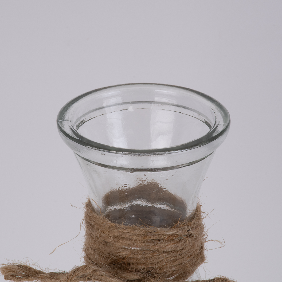 GloboStar® LUCY 35612 Διακοσμητικό Βάζο Γυάλινο Διάφανο με Σχοινί Φ8.1 x Υ20.5cm