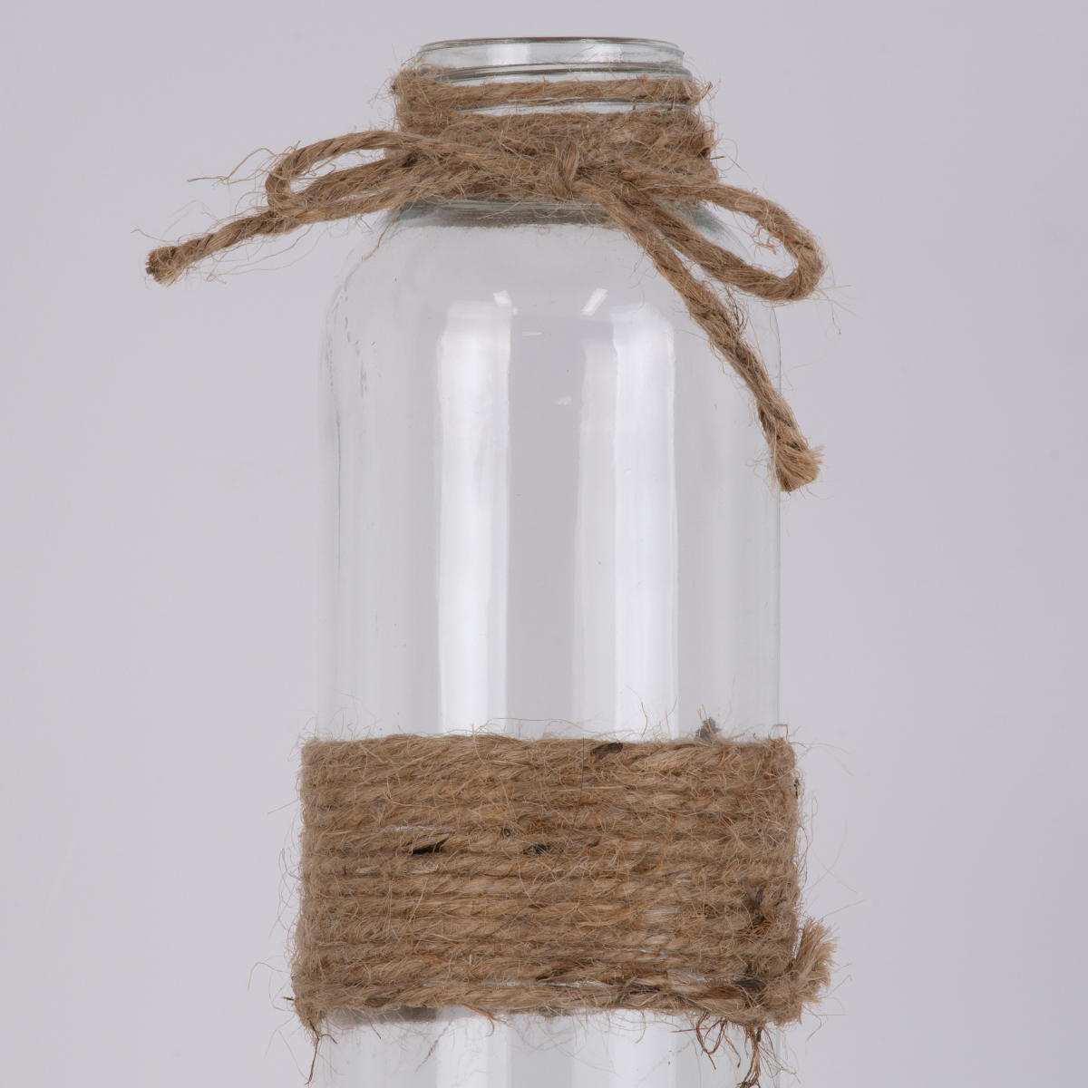 GloboStar® LUCY 35614 Διακοσμητικό Βάζο Γυάλινο Διάφανο με Σχοινί Φ6.6 x Υ21.8cm
