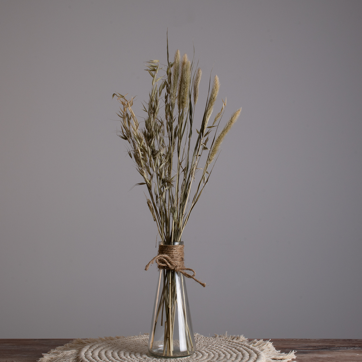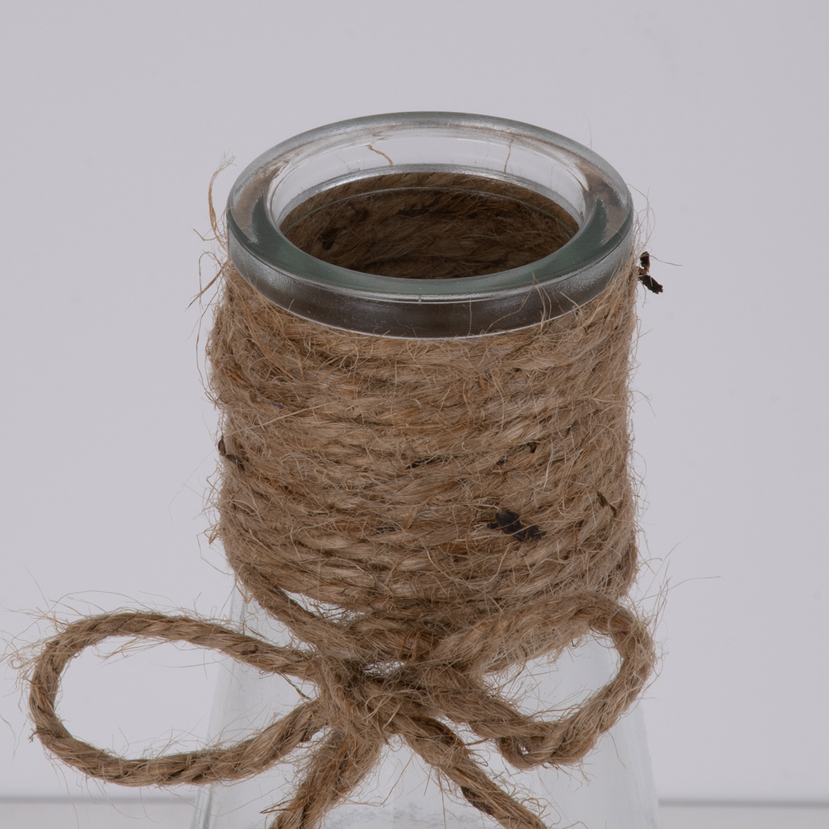 GloboStar® LUCY 35615 Διακοσμητικό Βάζο Γυάλινο Διάφανο με Σχοινί Φ7.8 x Υ18.2cm