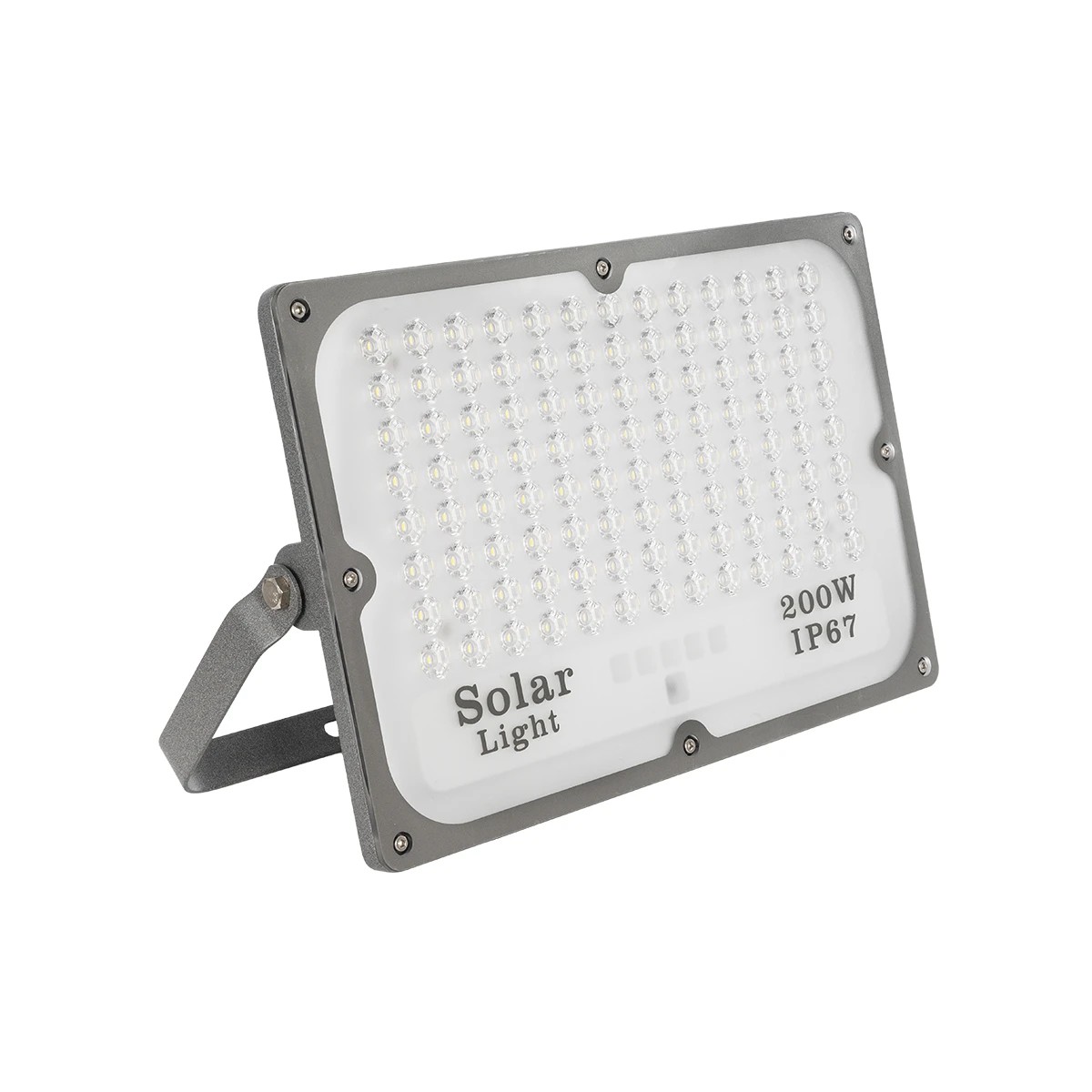 GLOBOSTAR® LUMOVOX 73068 Προβολέας LED 200W 10000lm 120° DC 5V με Φωτοβολταϊκό Panel 5V 12W & Επαναφορτιζόμενη Μπαταρία Li-ion 3.2V 10000mAh Αδιάβροχο IP67 Ψυχρό Λευκό 6000K - 180 x SMD2835 Sanan Chip - Γκρι Ανθρακί - Μ29.5 x Π5.5 x Υ19cm - 2 Χρόνια Εγγύη