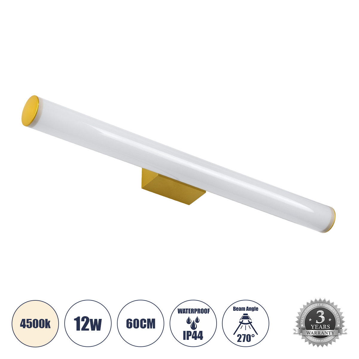 GloboStar® MABEL 60429 Μοντέρνο Φωτιστικό Τοίχου - Απλίκα Καθρέπτη Μπάνιου - Πίνακα LED 12W 1400lm 270° AC 220-240V IP44 Μ60 x Π10 x Υ5cm - Φυσικό Λευκό 4500K - Χρυσό - 3 Χρόνια Εγγύηση