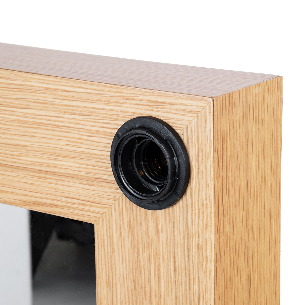 GloboStar® MAKEUP MIRROR-160x80-1 Μοντέρνος Καθρέπτης Μακιγιάζ με Πλαίσιο Φυσικού Ξύλου με Διακόπτη On/Off 20 x E27 AC220-240V - Μ80 x Π7 x Υ160cm - Μπεζ Δρυς
