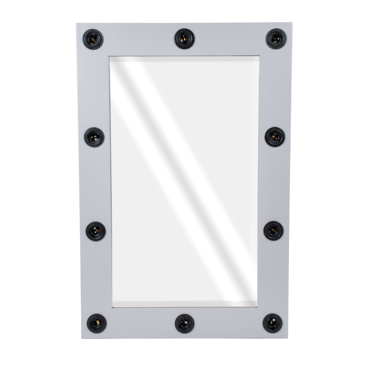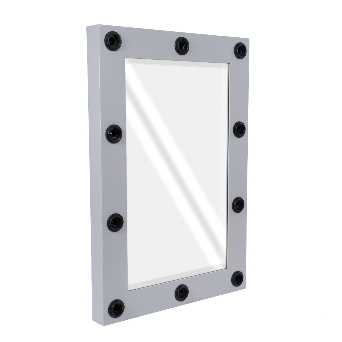 GloboStar® MAKEUP MIRROR-60x90-3 Μοντέρνος Καθρέπτης Μακιγιάζ με Πλαίσιο Φυσικού Ξύλου με Διακόπτη On/Off 10 x E27 AC220-240V - Μ60 x Π7 x Υ90cm - Γκρι Τσιμέντου