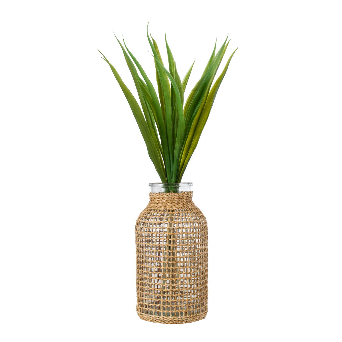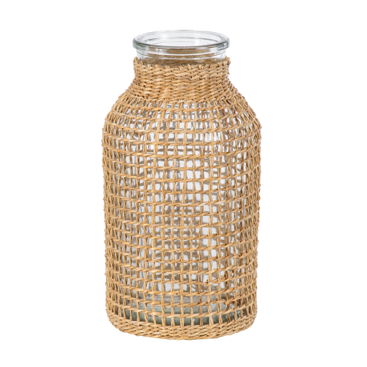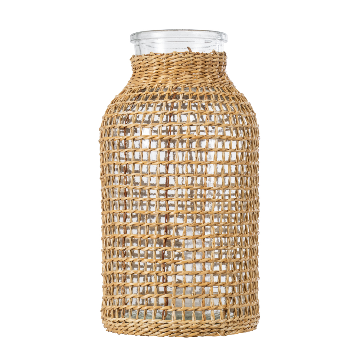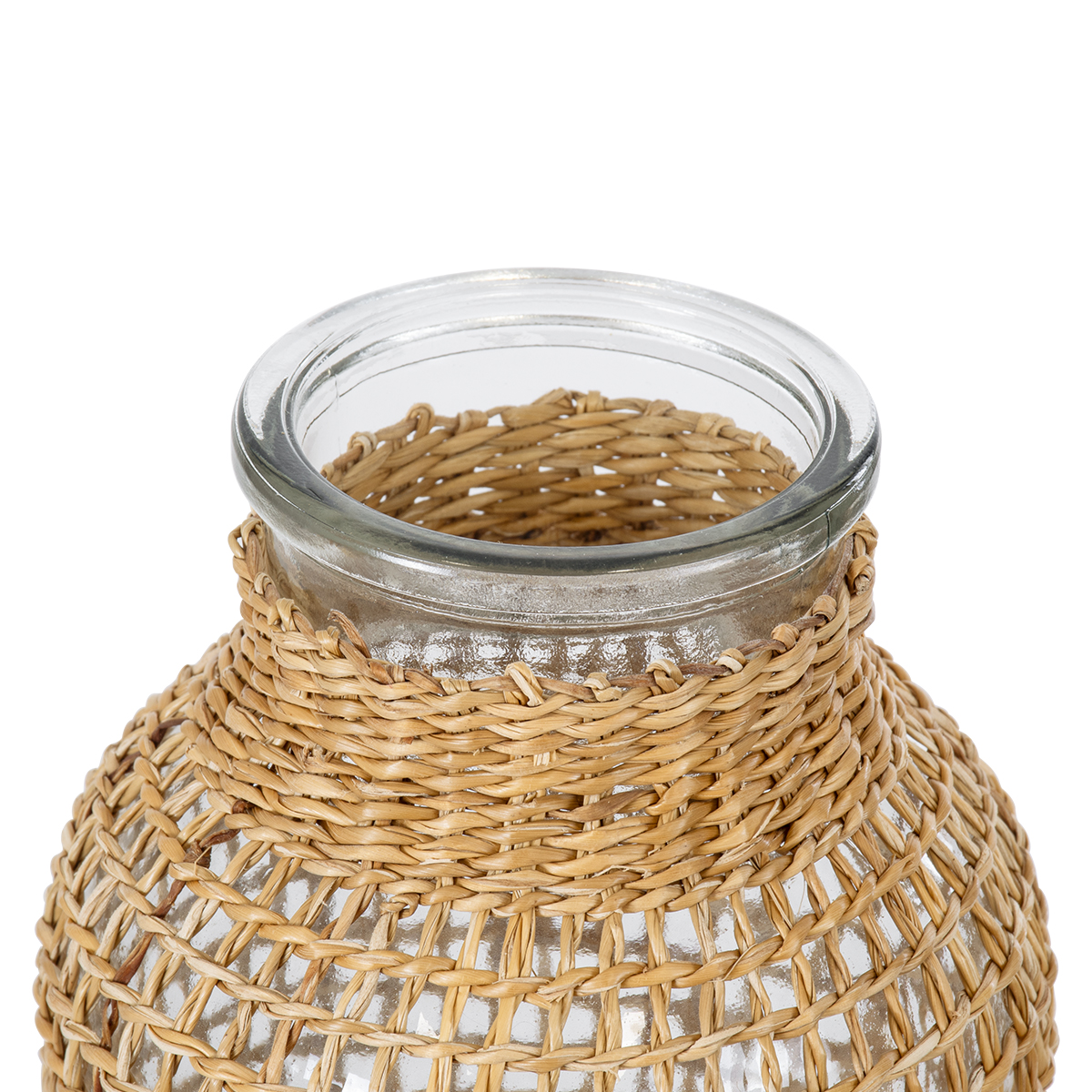 GloboStar® MANDY 35620 Διακοσμητικό Βάζο Γυάλινο Διάφανο με Μπαμπού Φ10.5 x Υ20cm