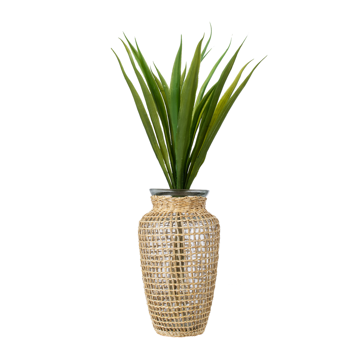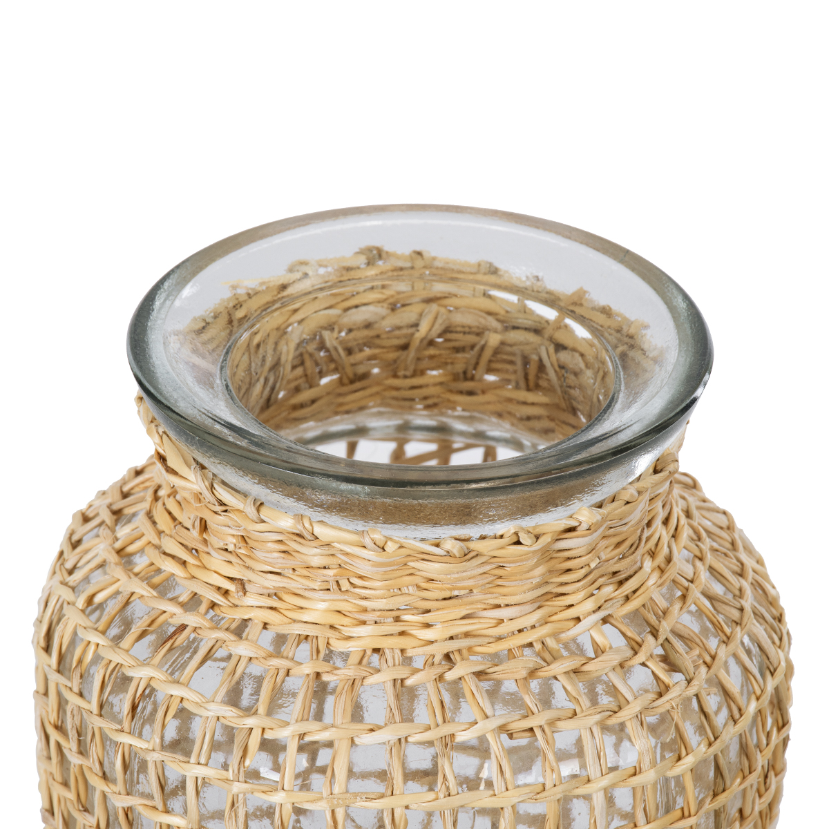 GloboStar® MANDY 35621 Διακοσμητικό Βάζο Γυάλινο Διάφανο με Μπαμπού Φ11.5 x Υ21cm