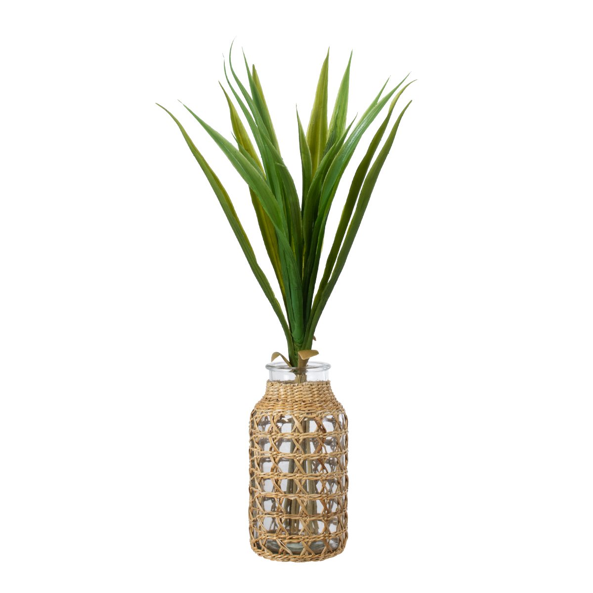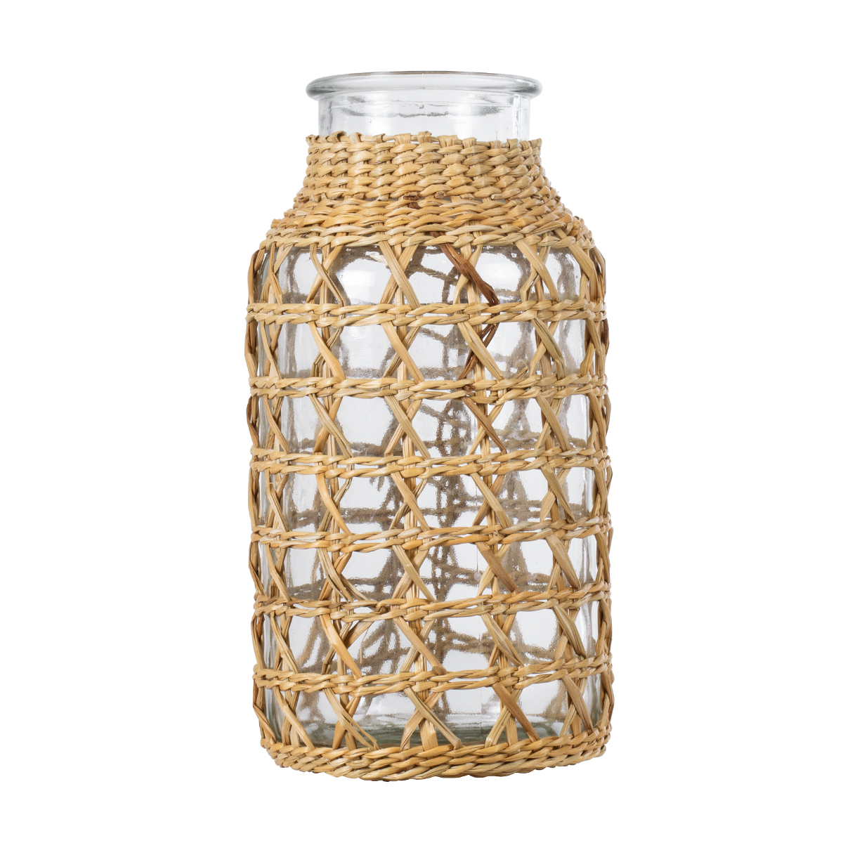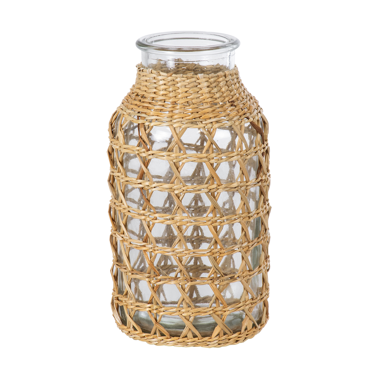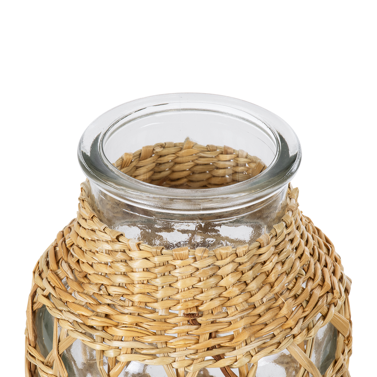 GloboStar® MANDY 35625 Διακοσμητικό Βάζο Γυάλινο Διάφανο με Μπαμπού Φ8.5 x Υ17.5cm