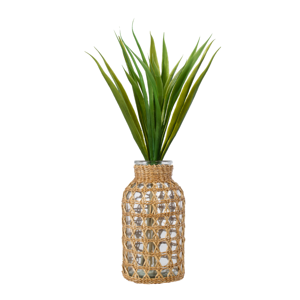 GloboStar® MANDY 35626 Διακοσμητικό Βάζο Γυάλινο Διάφανο με Μπαμπού Φ10.5 x Υ20cm