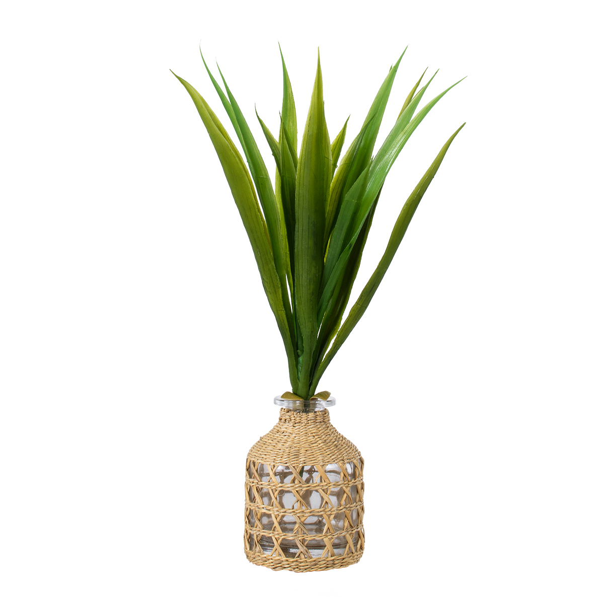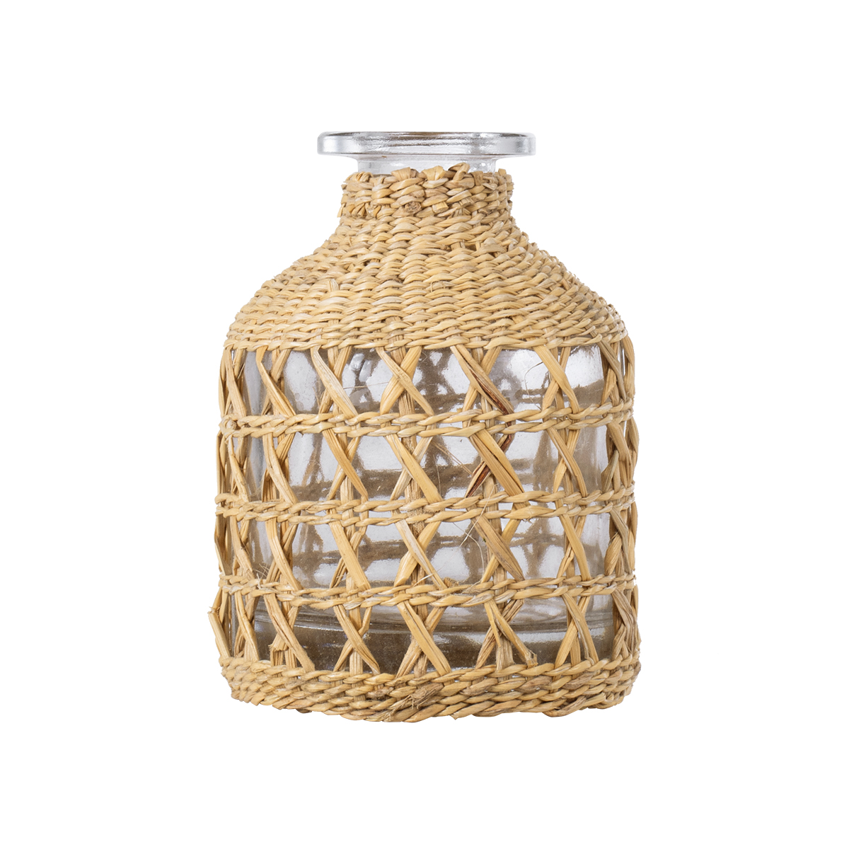 GloboStar® MANDY 35629 Διακοσμητικό Βάζο Γυάλινο Διάφανο με Μπαμπού Φ8.5 x Υ11.5cm