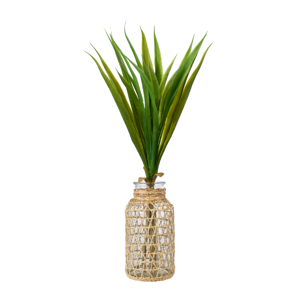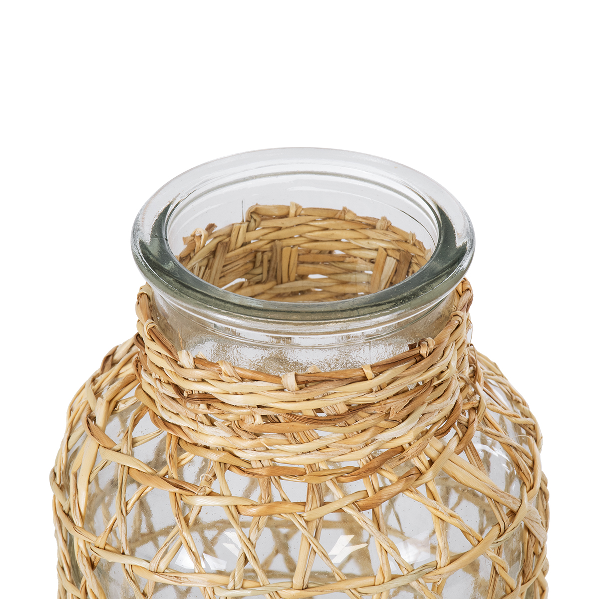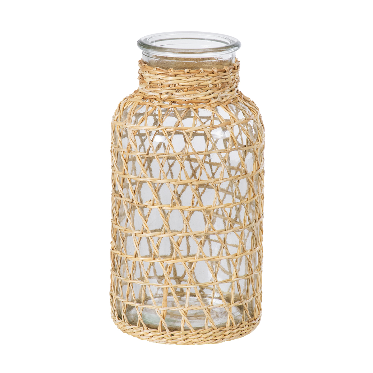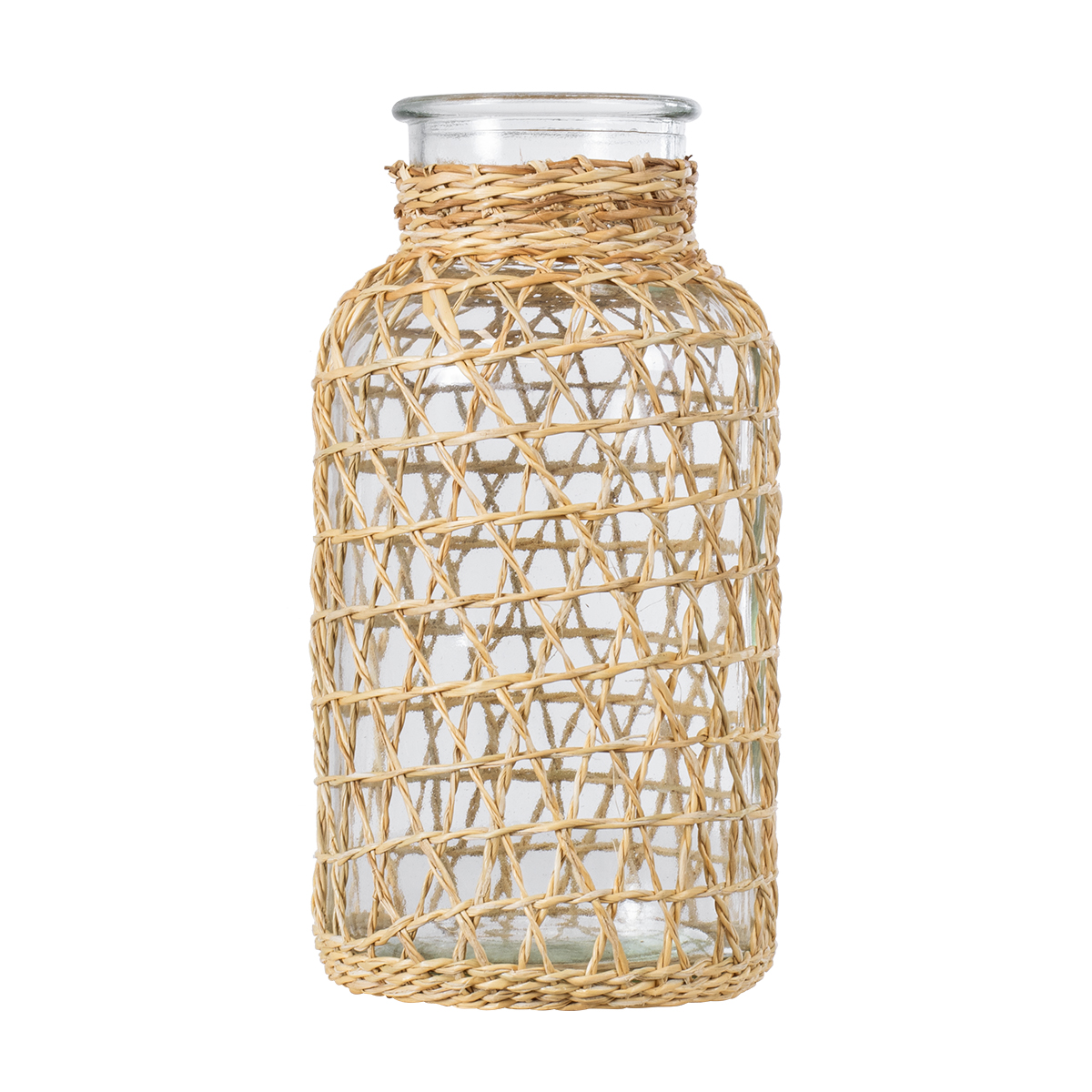 GloboStar® MANDY 35630 Διακοσμητικό Βάζο Γυάλινο Διάφανο με Μπαμπού Φ8.5 x Υ17.5cm