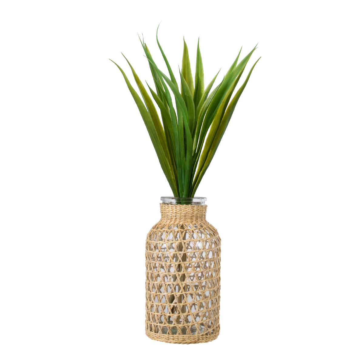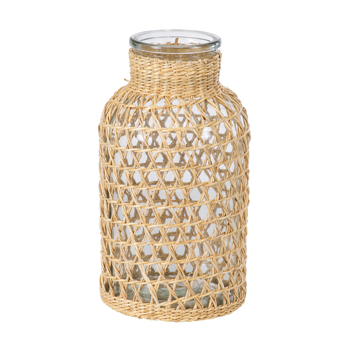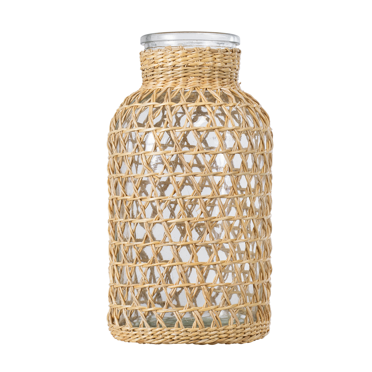 GloboStar® MANDY 35631 Διακοσμητικό Βάζο Γυάλινο Διάφανο με Μπαμπού Φ10.5 x Υ20cm