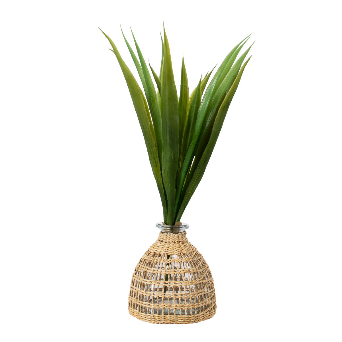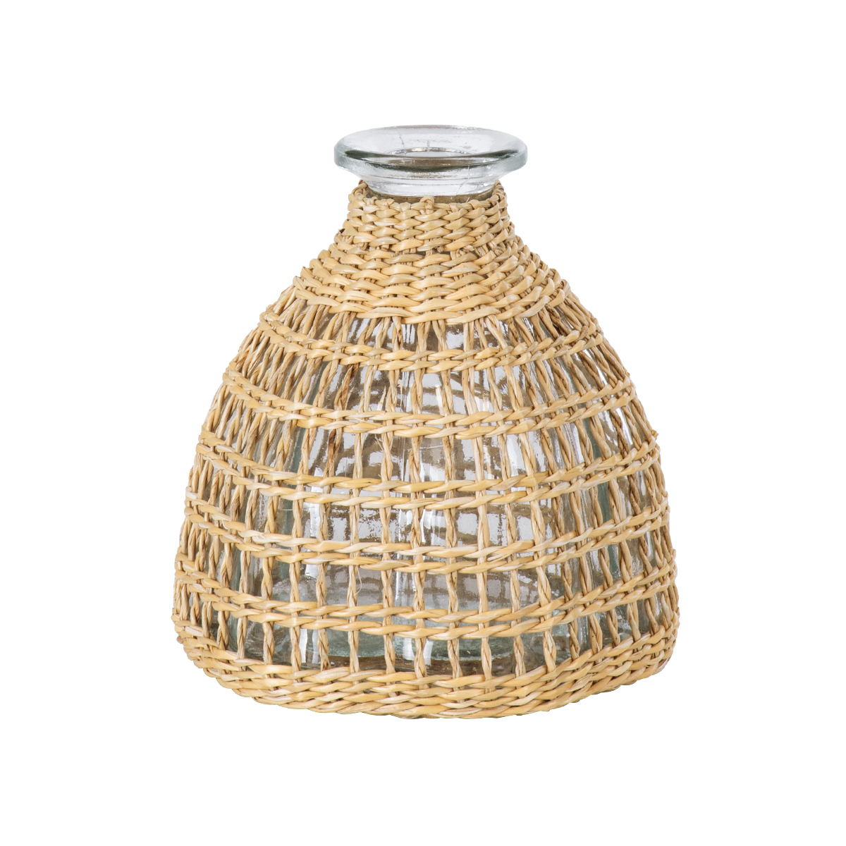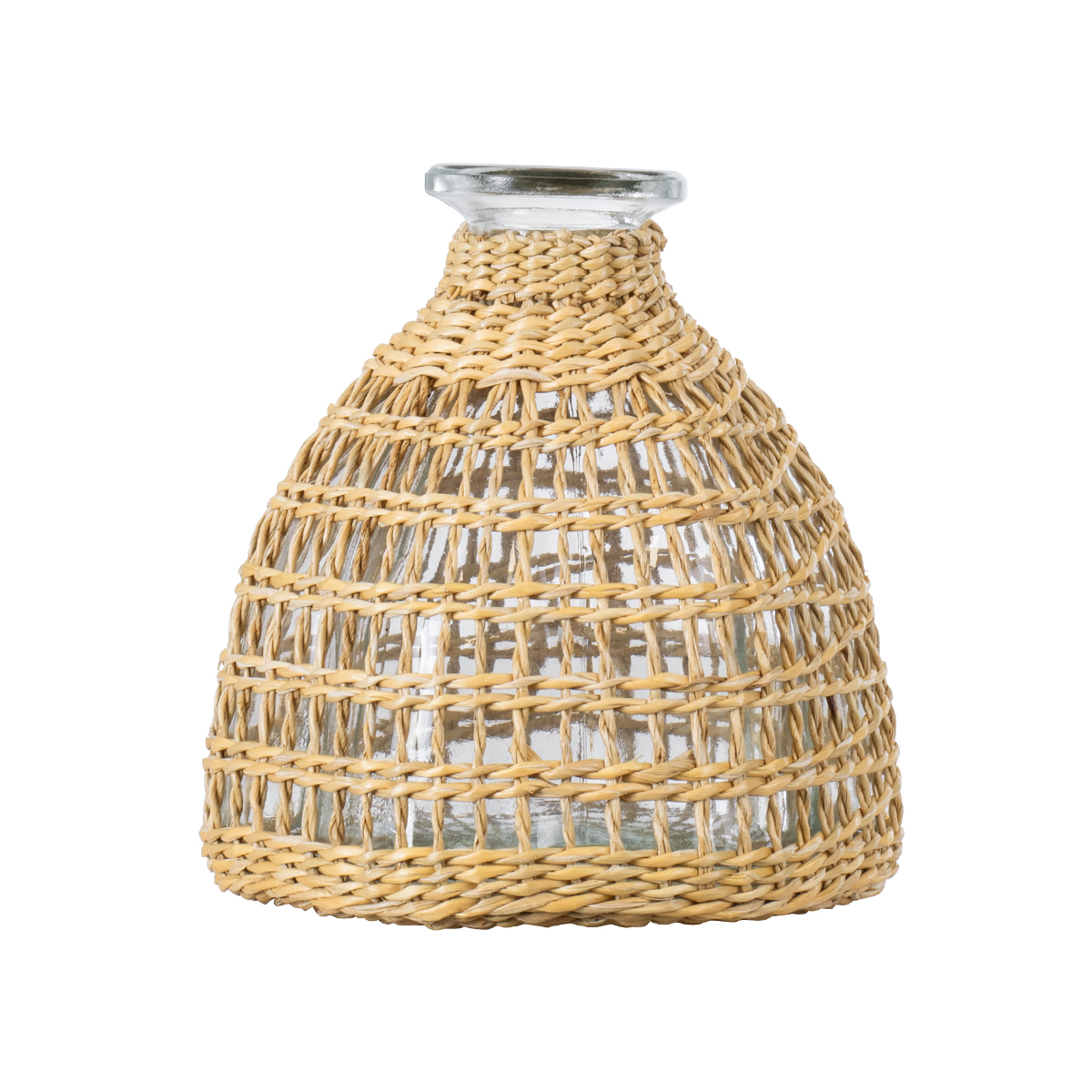 GloboStar® MANDY 35632 Διακοσμητικό Βάζο Γυάλινο Διάφανο με Μπαμπού Φ10.5 x Υ11cm