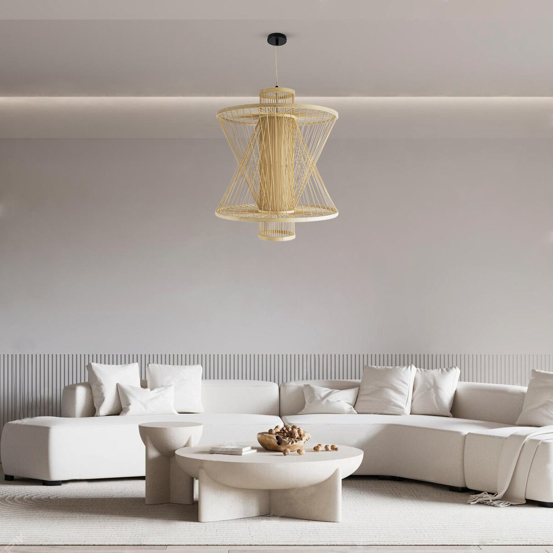 GLOBOSTAR® HIBISCUS 01931 Boho Κρεμαστό Φωτιστικό Οροφής με Ντουί 1 x E27 AC 220-240V IP20 - Μπεζ - Μ50 x Π50 x Υ60cm