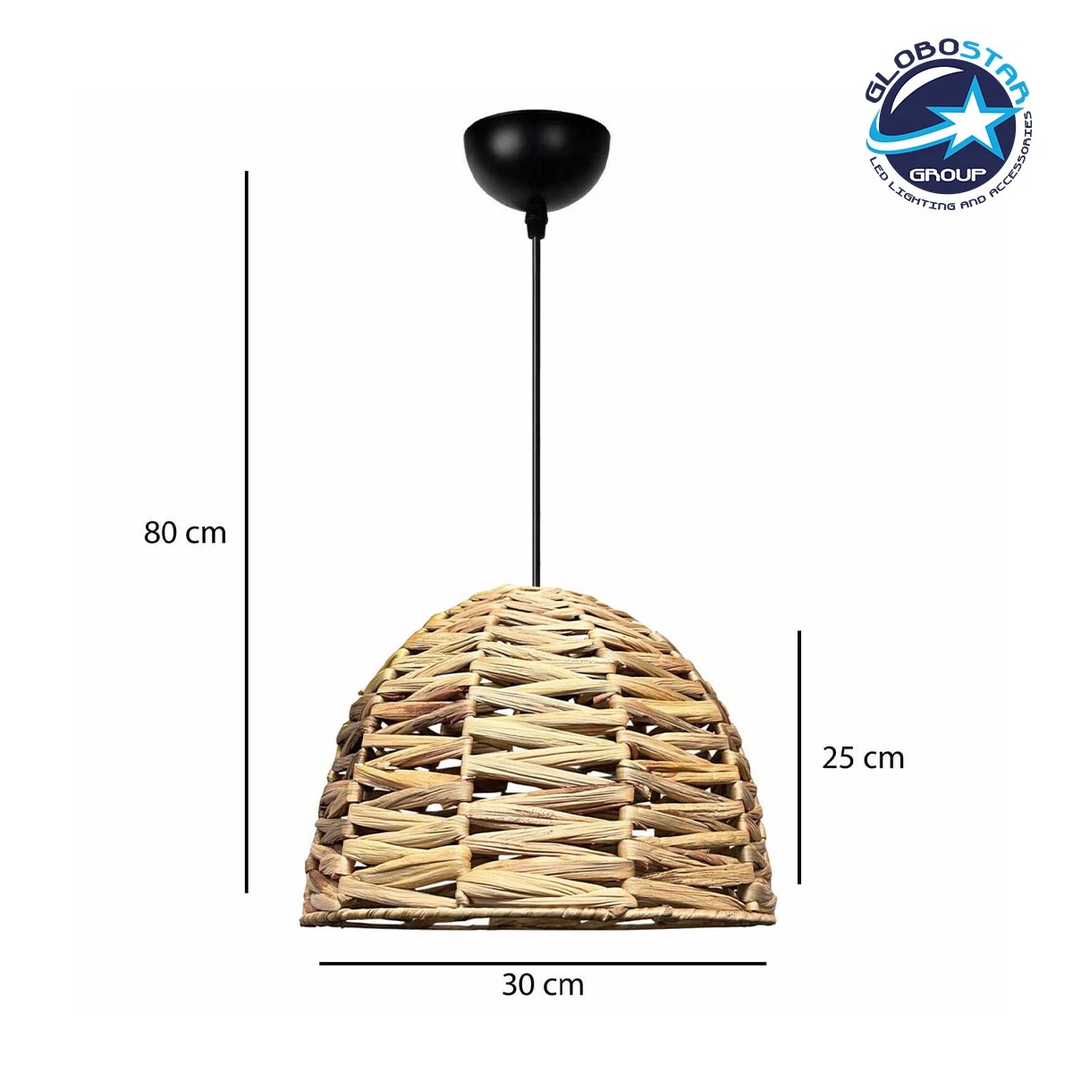 GLOBOSTAR® MEKA 204-0165 Boho Κρεμαστό Φωτιστικό Οροφής με Ντουί 1 x E27 AC 220-240V IP20 - Μπεζ - Μ30 x Π30 x Υ25cm