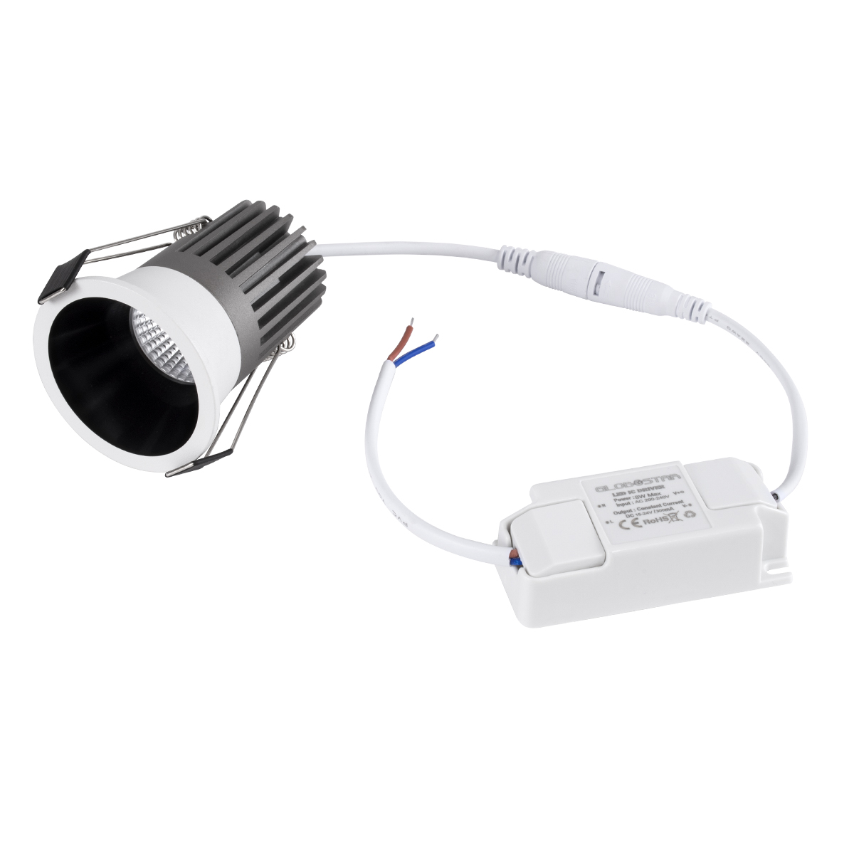 GLOBOSTAR® MICRO-B 60241 Χωνευτό Downlight Σποτ LED 7W 875lm 38° AC 220-240V IP20 Θερμό Λευκό 2700K - Bridgelux COB Chip & TÜV SÜD Driver - Λευκό & Μαύρο Ματ - Μ6 x Π6 x Υ7.8cm / Q5cm - 5 Χρόνια Εγγύηση