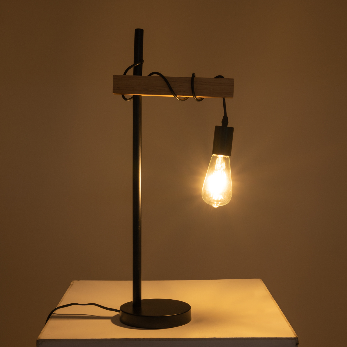 GLOBOSTAR® MINDELO 02032 Μοντέρνο Επιτραπέζιο Φωτιστικό Πορτατίφ με Ντουί 1 x E27 AC 220-240V IP20 - Μαύρο & Μπεζ - Μ25 x Π15 x Υ60cm