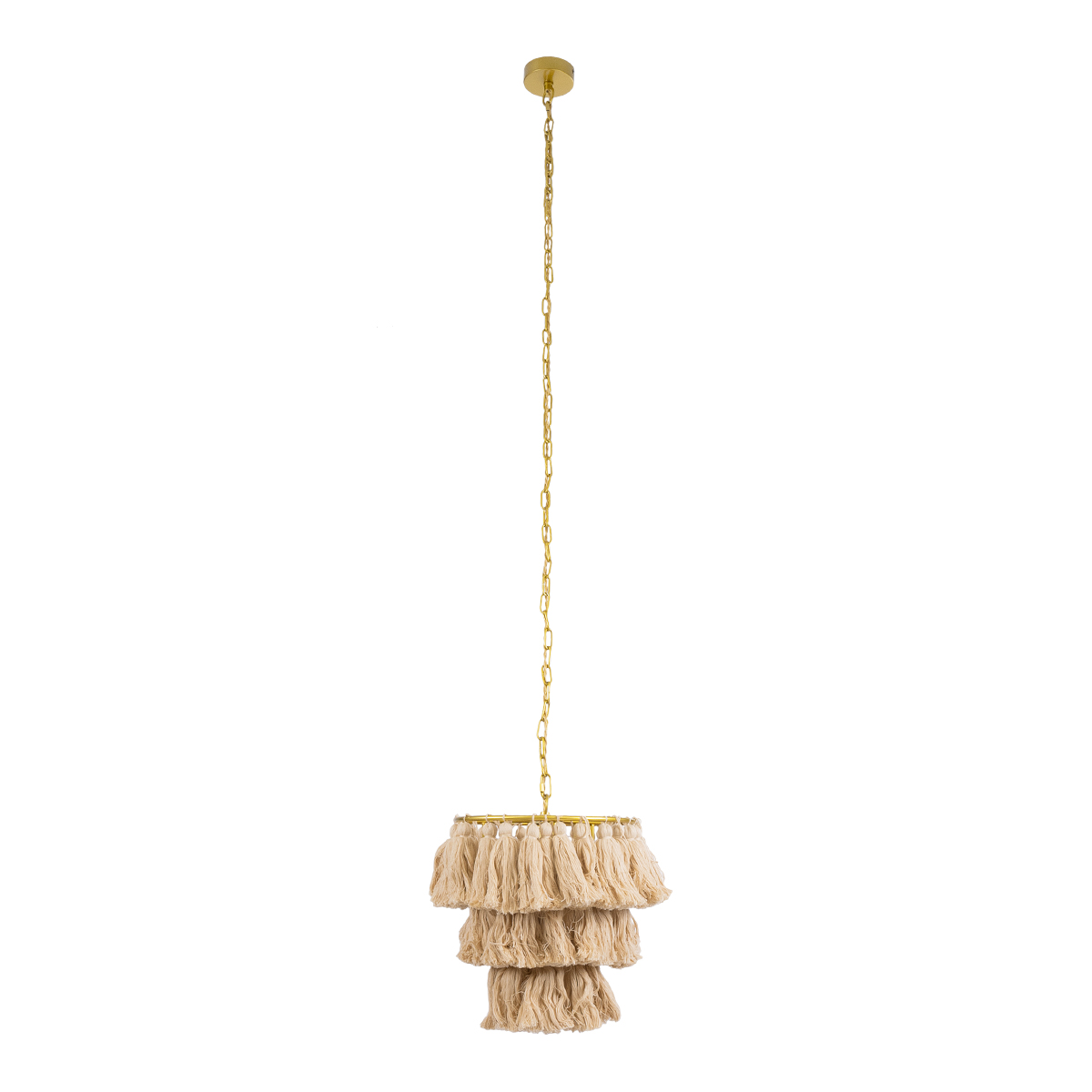GLOBOSTAR® MISSOULA 02084 Boho Κρεμαστό Φωτιστικό Οροφής με Ντουί 1 x E27 AC 220-240V IP20 - Μπεζ & Χρυσό - Μ30 x Π30 x Υ40cm
