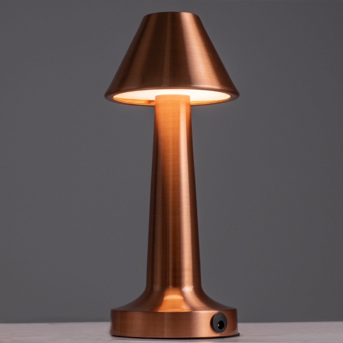 GloboStar® MOLLY 76517 Επαναφορτιζόμενο Επιτραπέζιο Φωτιστικό Πορτατίφ LED 1.5W 105lm 120° DC 5V IP44 Θερμό Λευκό 2700K Dimmable Χάλκινο Αλουμίνιο - Μ10 x Π10 x Υ23cm - 2 Xρόνια Εγγύηση