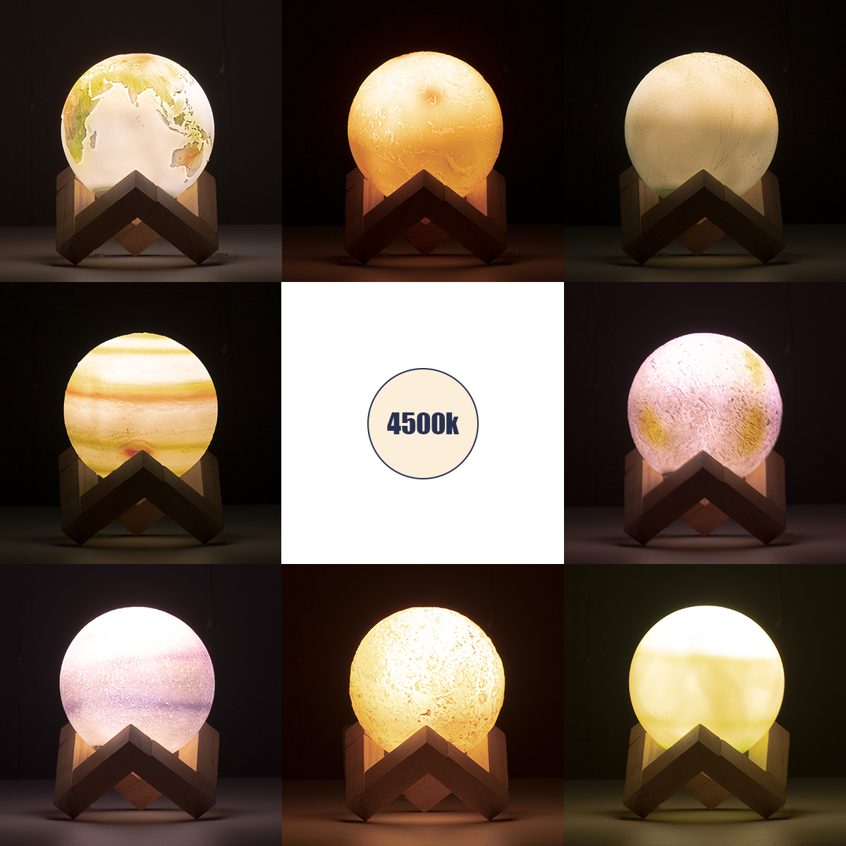 GloboStar® MOON 79609 Επιτραπέζιο Φωτιστικό Πορτατίφ LED 2W 120lm 360° DC 5V IP20 CCT Θερμό Λευκό 2700K - Φυσικό Λευκό 4500K - Ψυχρό Λευκό 6000K Dimmable Πολύχρωμο Πλαστικό με Μπεζ Ξύλο - Μ8 x Π8 x Υ11cm - ΣΕΤ 8 Τεμαχίων - 2 Xρόνια Εγγύηση