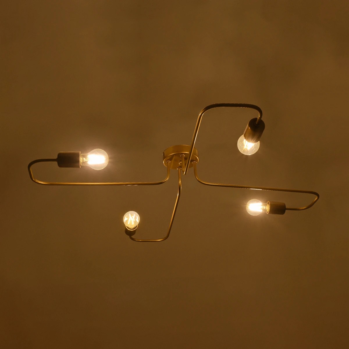 GLOBOSTAR® MOORNA 201-0065 Vintage Φωτιστικό Οροφής με Ντουί 4 x E27 AC 220-240V IP20 - Χρυσό - Μ97 x Π97 x Υ7cm