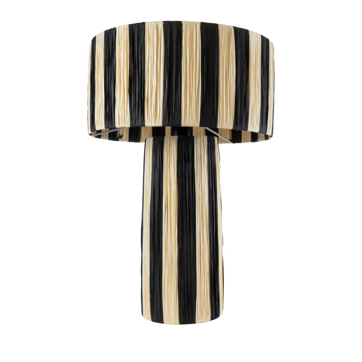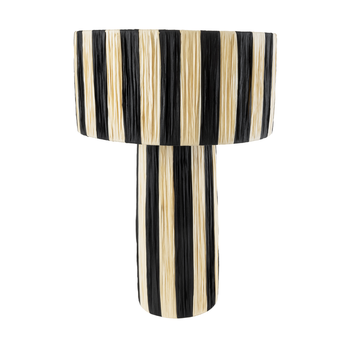 GloboStar® NASSAU 02234 Boho Επιτραπέζιο Φωτιστικό Πορτατίφ Μονόφωτο 1 x E27 IP20 Μπεζ & Μαύρη Raffia - Μ37 x Π37 x Υ55cm