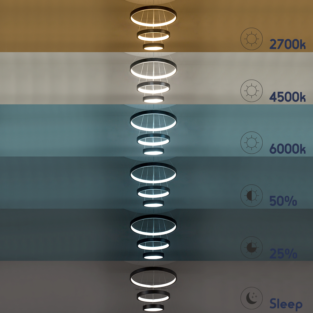 GLOBOSTAR® NEMESIS TRIO 61167 Μοντέρνο Κρεμαστό Φωτιστικό Οροφής LED 100W 12123lm 360° AC 220-240V IP20 Ρυθμιζόμενο Λευκό CCT με Χειριστήριο από 2700K έως 6000K Dimmable - Lumileds SMD Chip - Μαύρο Ματ - Μ60 x Π60 x Υ60cm - 3 Χρόνια Εγγύηση