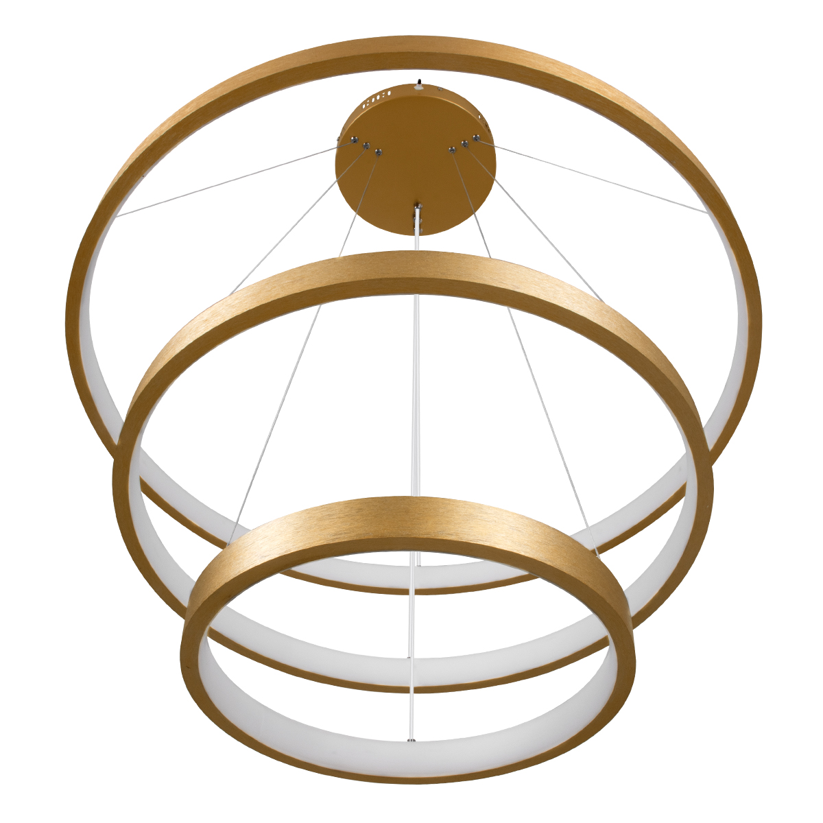 GLOBOSTAR® NEMESIS TRIO 61172 Μοντέρνο Κρεμαστό Φωτιστικό Οροφής LED 120W 14723lm 360° AC 220-240V IP20 Ρυθμιζόμενο Λευκό CCT με Χειριστήριο από 2700K έως 6000K Dimmable - Lumileds SMD Chip - Χρυσό Βούρτσας - Μ80 x Π80 x Υ80cm - 3 Χρόνια Εγγύηση
