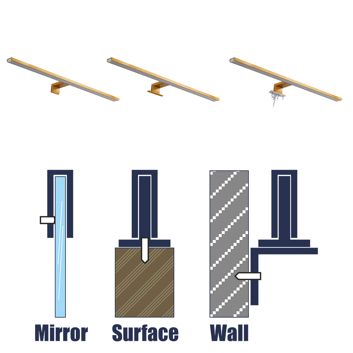 GLOBOSTAR® NINA 60423 Μοντέρνο Φωτιστικό Τοίχου - Απλίκα Καθρέπτη Μπάνιου LED 12W 1400lm 120° AC 220-240V IP20 Φυσικό Λευκό 4500K - Lumileds SMD Chip & TÜV SÜD Driver - Χρυσό Βούρτσας - Μ60 x Π10.5 x Υ4cm - 3 Χρόνια Εγγύηση