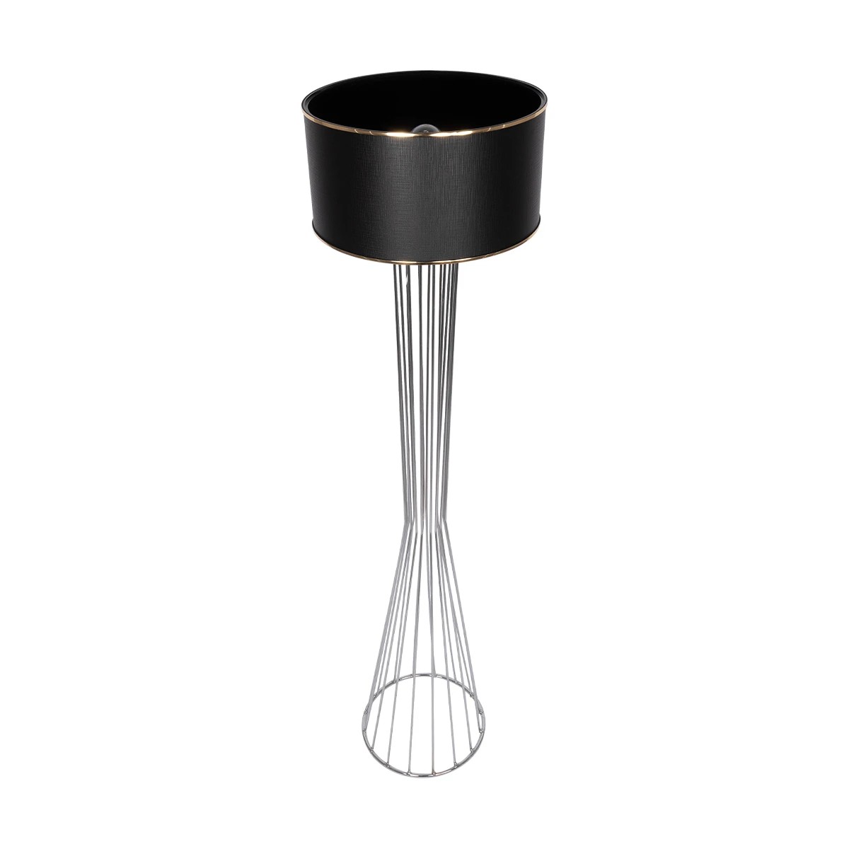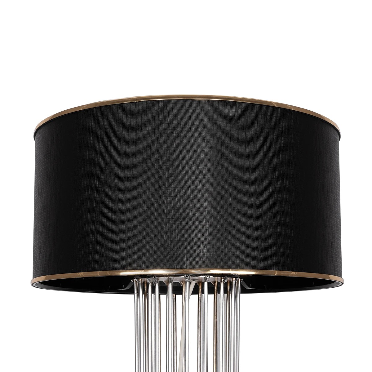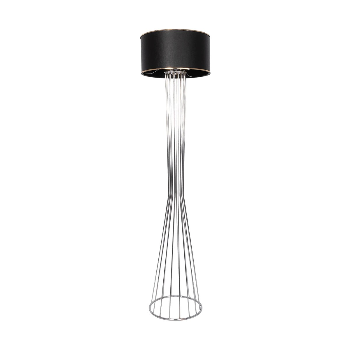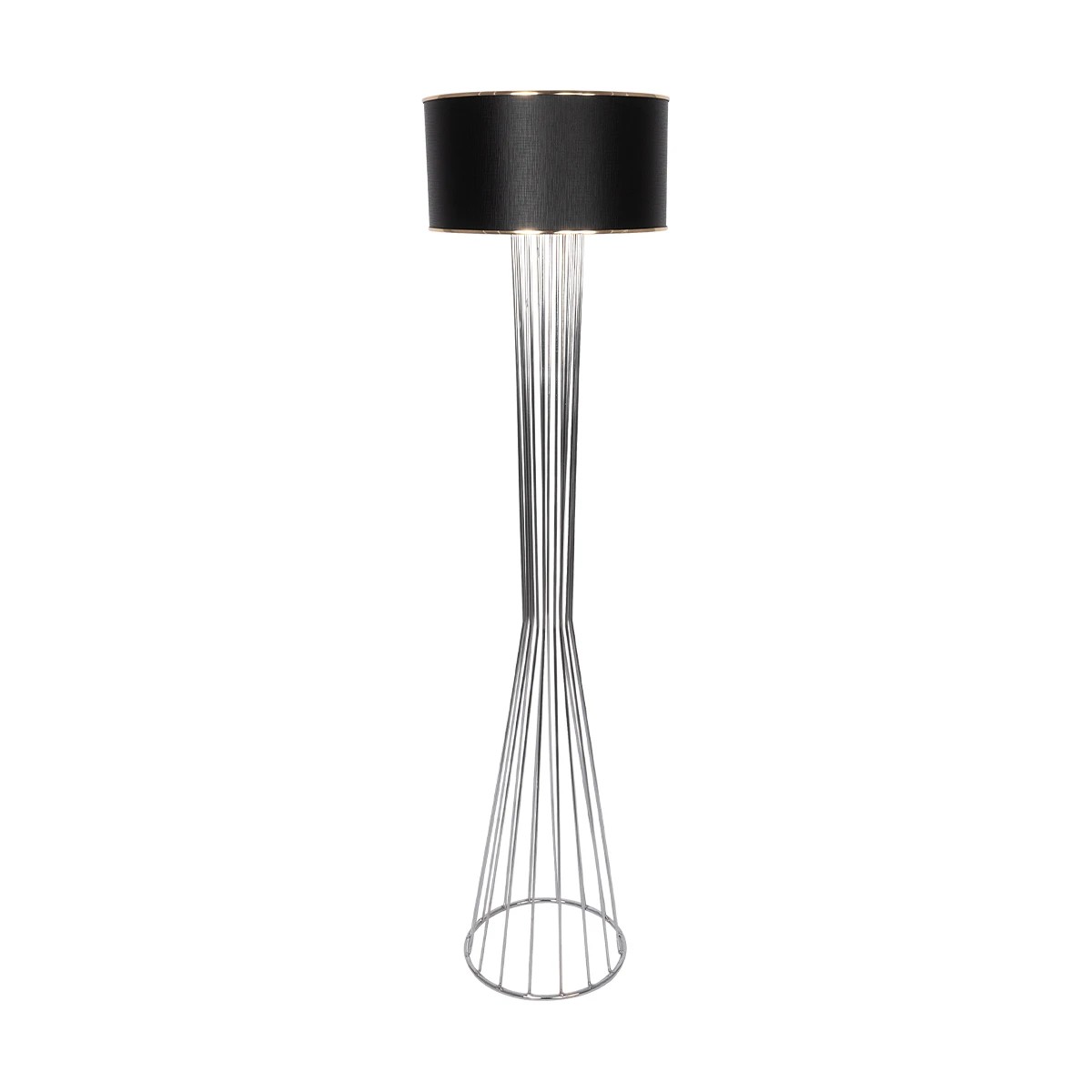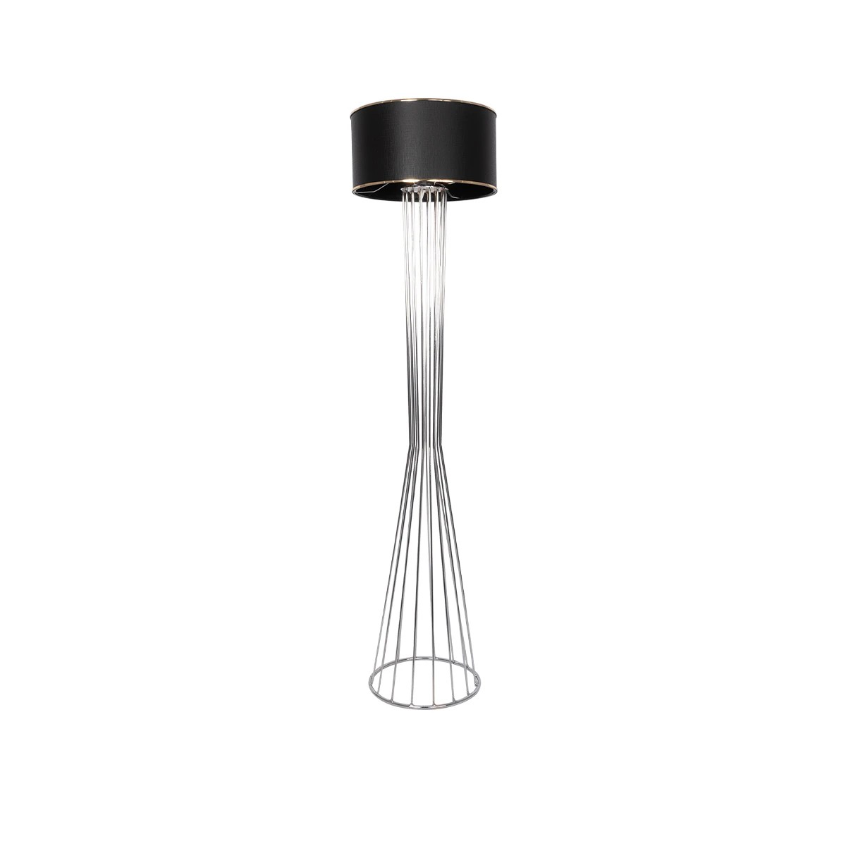 GloboStar® NOVA 201-0039 Μοντέρνο Επιδαπέδιο Φωτιστικό 1 x E27 IP20 Ασημί Μεταλλό με Μαύρο Ύφασμα - Μ36 x Π36 x Υ148cm