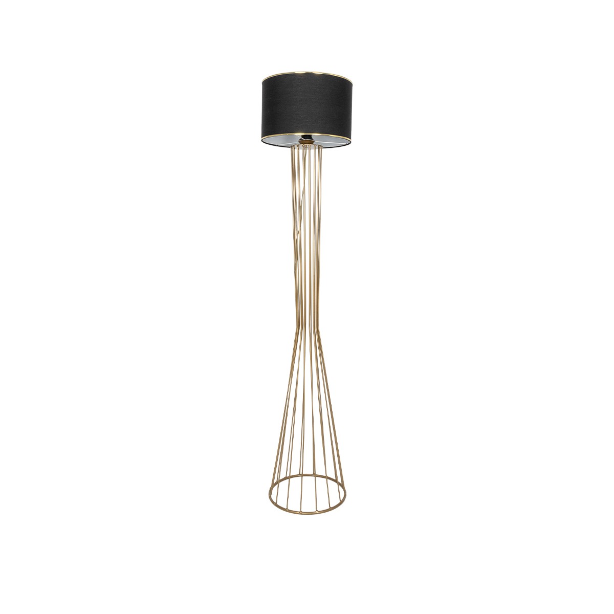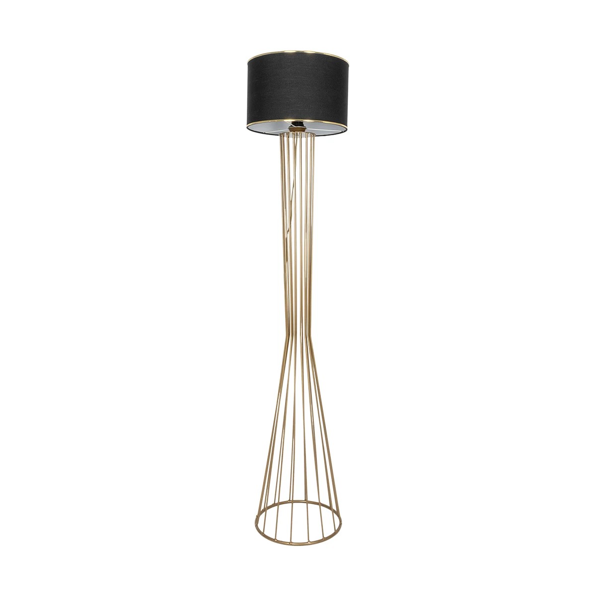GloboStar® NOVA 201-0042 Μοντέρνο Επιδαπέδιο Φωτιστικό 1 x E27 IP20 Χρυσό Μεταλλό με Μαύρο Ύφασμα - Μ32 x Π32 x Υ152cm