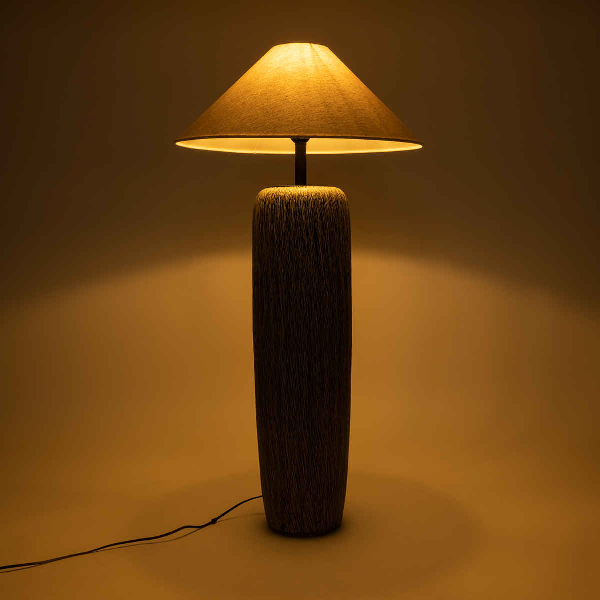 GloboStar® OLIANA 02315 Boho Επιδαπέδιο Φωτιστικό Μονόφωτο 1 x E27 IP20 Γκρι Κεραμικό με Μπεζ Ύφασμα - Μ55 x Π55 x Υ110cm