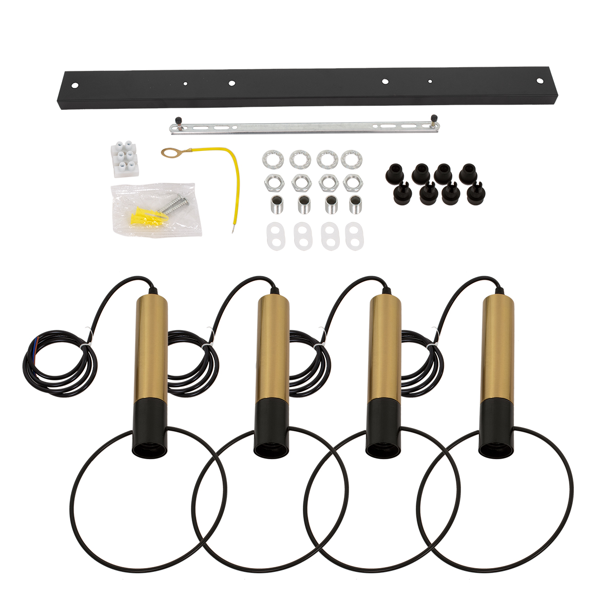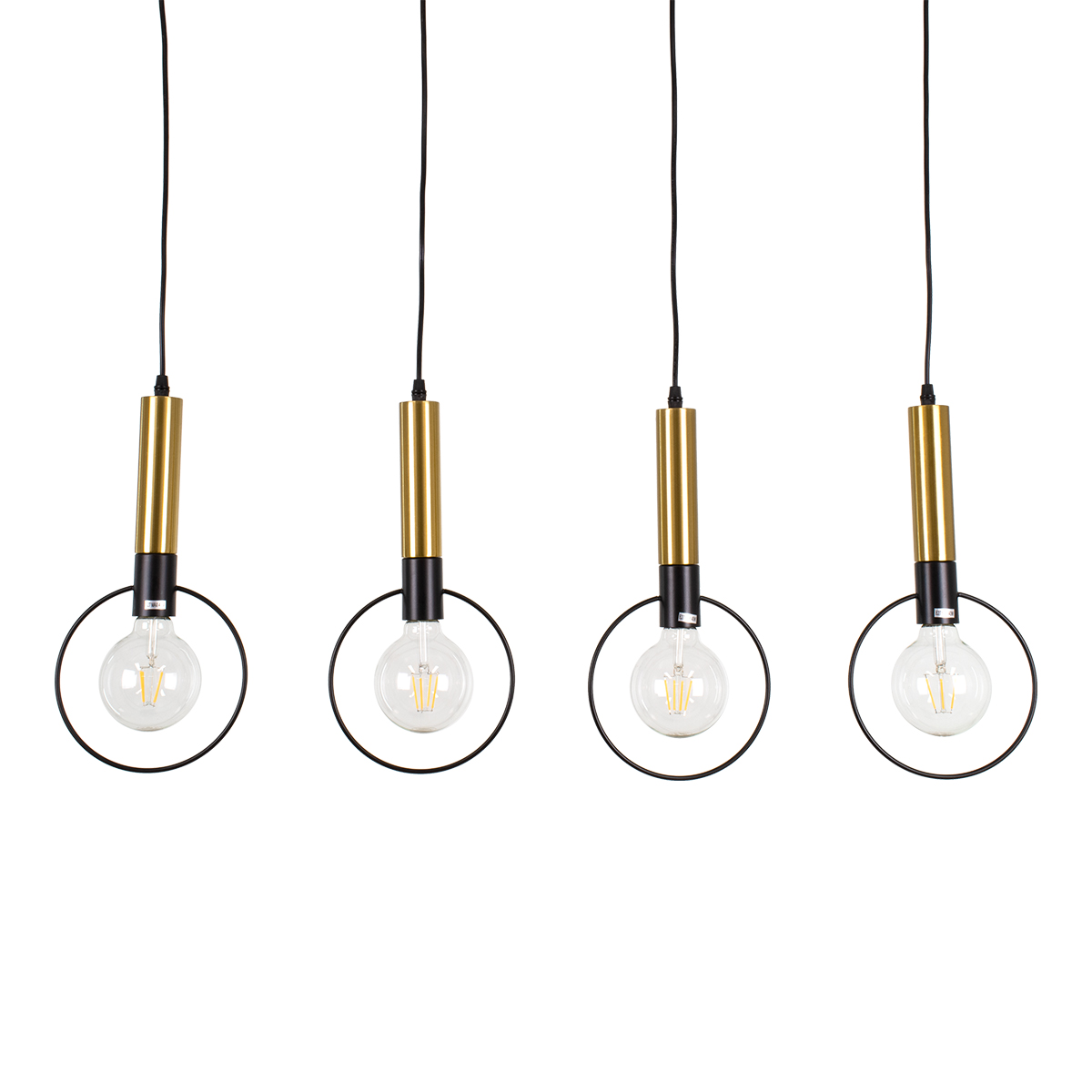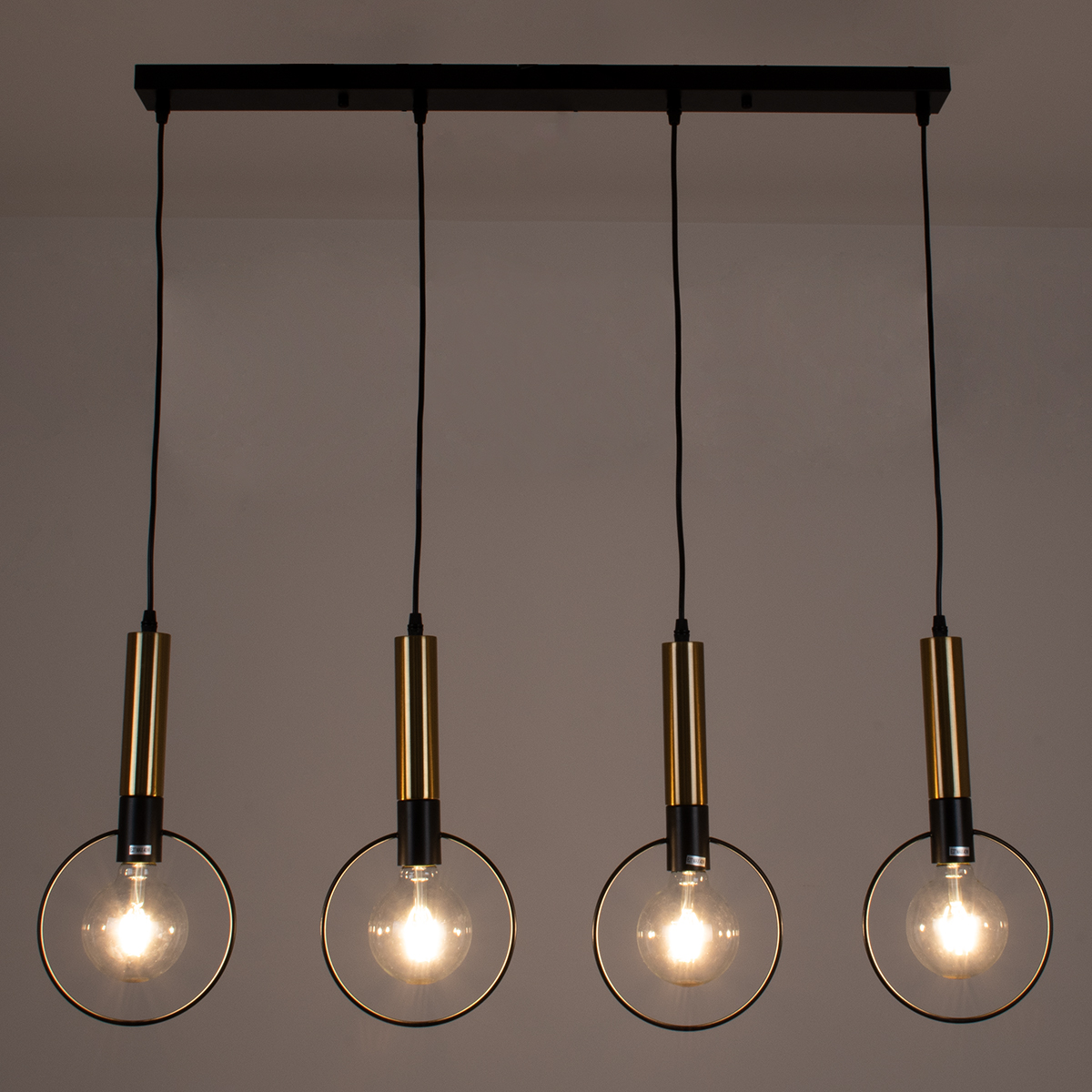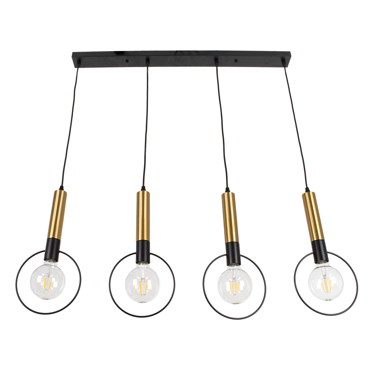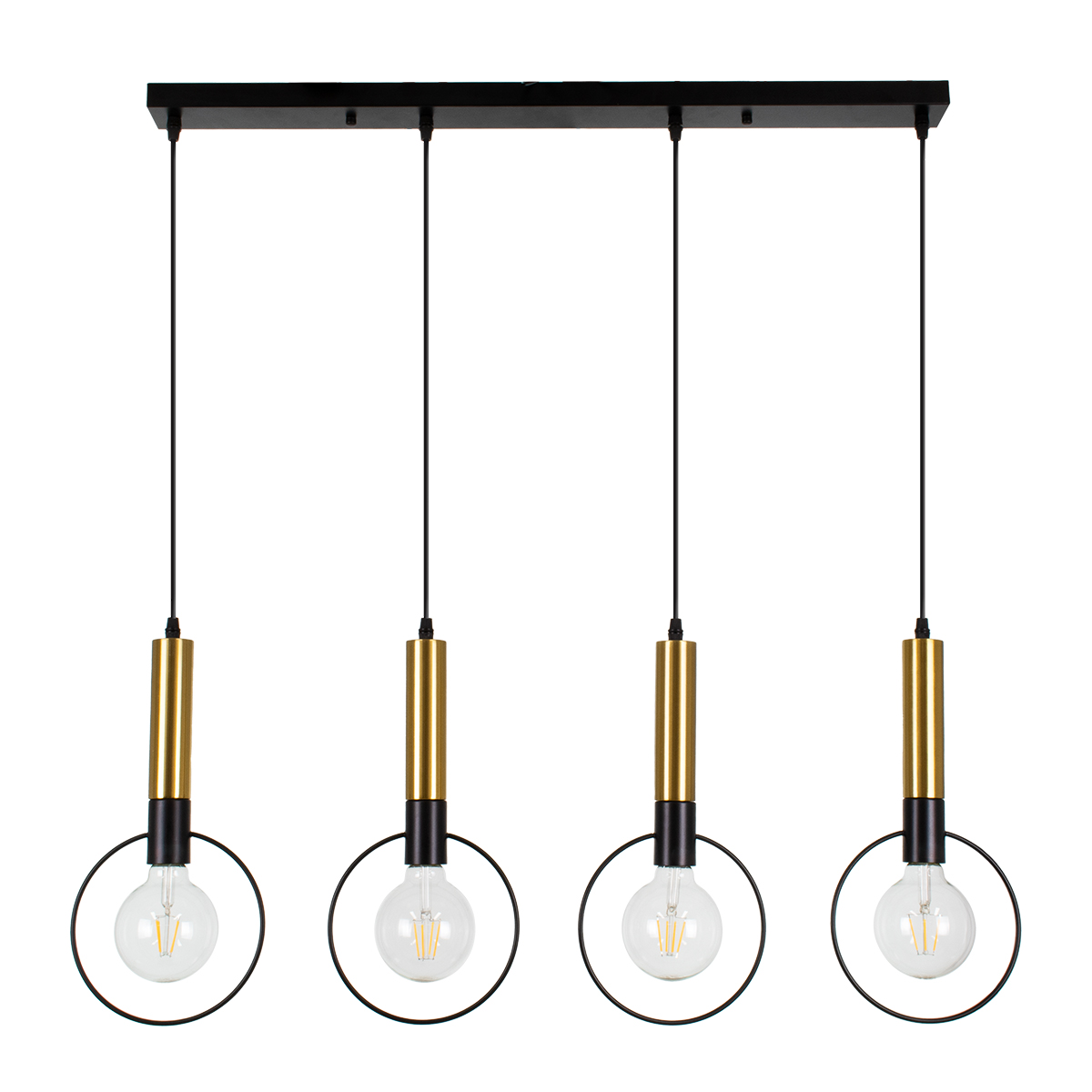 GLOBOSTAR® OLVERO 00775 Μοντέρνο Κρεμαστό Φωτιστικό Οροφής με Ντουί 4 x E27 AC 220-240V IP20 - Μαύρο & Χρυσό - Μ90 x Π18 x Y130cm
