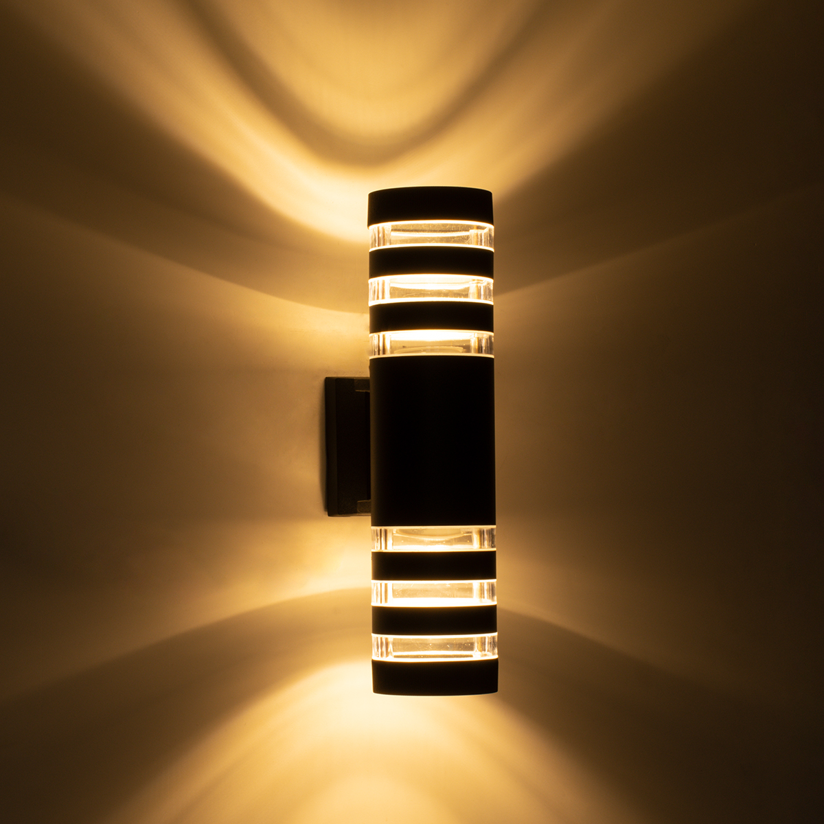 GLOBOSTAR® ORION 77883 Μοντέρνο Φωτιστικό Τοίχου - Απλίκα με Ντουί 2 x GU10 AC 220-240V Αδιάβροχο IP65 - Μαύρο Ματ - Μ9 x Π15 x Υ35.5cm