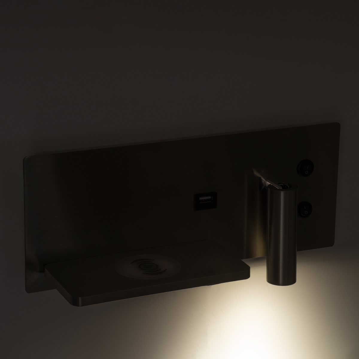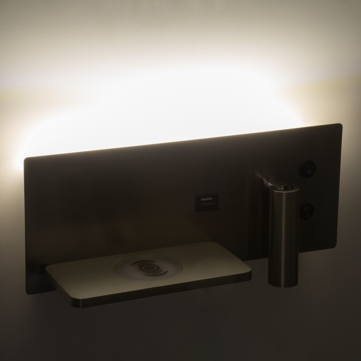 GLOBOSTAR® PALADIN 61355 Μοντέρνο Φωτιστικό Τοίχου - Απλίκα Ξενοδοχείου Reading Light με Φορτιστή USB 3A & Wireless 20W LED 6W 720lm 36° & 360° AC 220-240V IP20 Φυσικό Λευκό 4500K - Bridgelux COB Chip & TÜV SÜD Driver - Νίκελ Βούρτσας - Μ30 x Π11 x Υ12cm