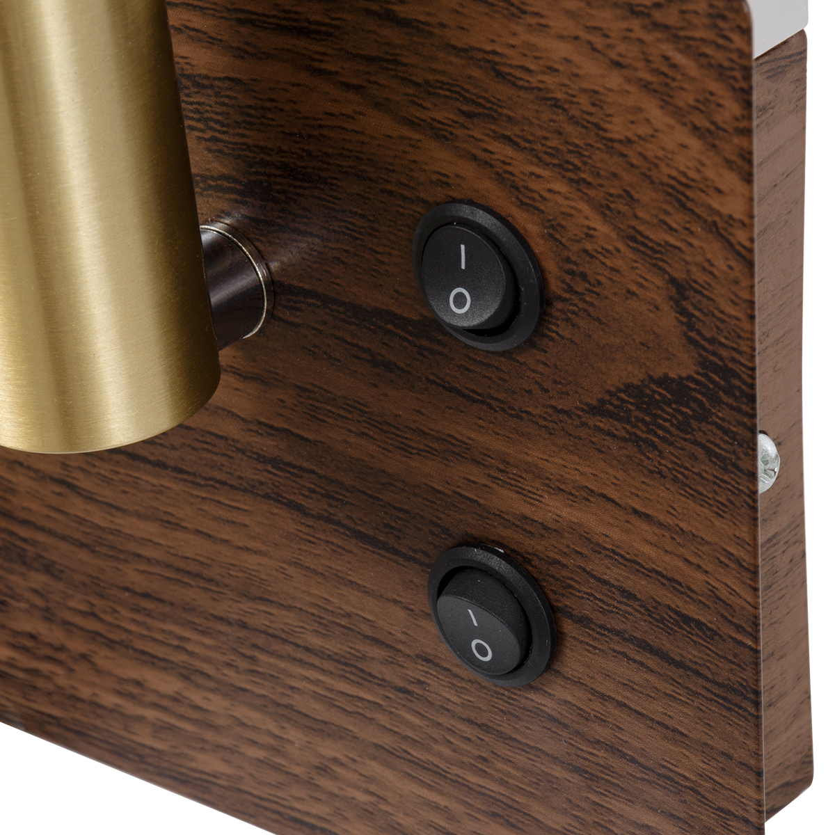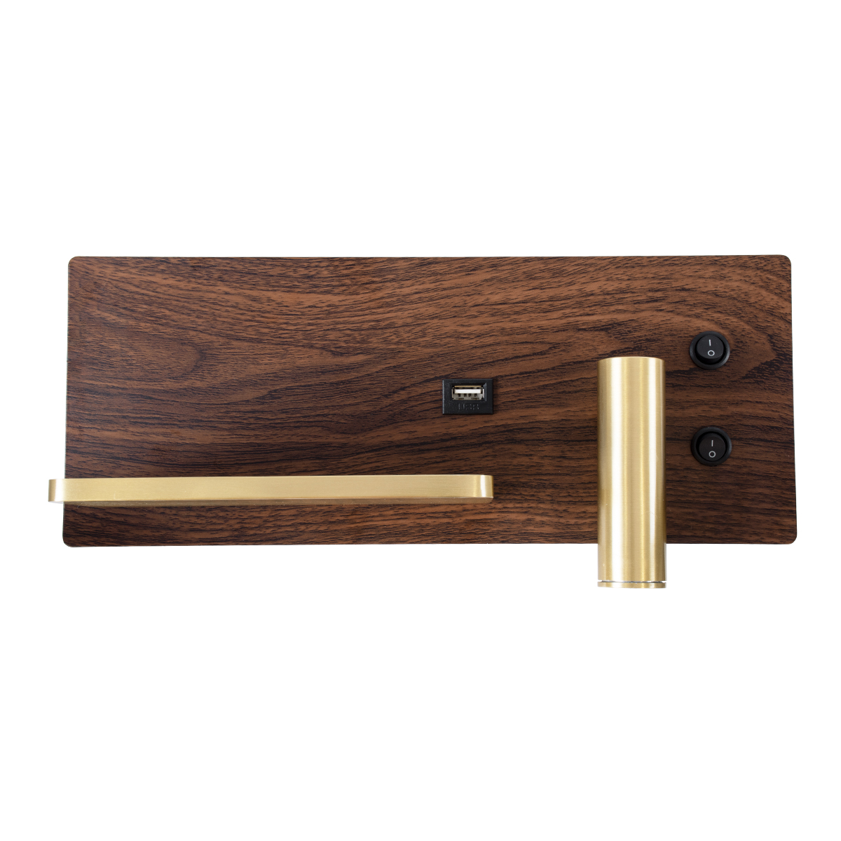 GLOBOSTAR® PALADIN 61361 Μοντέρνο Φωτιστικό Τοίχου - Απλίκα Ξενοδοχείου Reading Light με Φορτιστή USB 3A & Wireless 20W LED 6W 720lm 36° & 360° AC 220-240V IP20 Φυσικό Λευκό 4500K - Bridgelux COB Chip & TÜV SÜD Driver - Καφέ & Χρυσό Βούρτσας - Μ30 x Π11 x