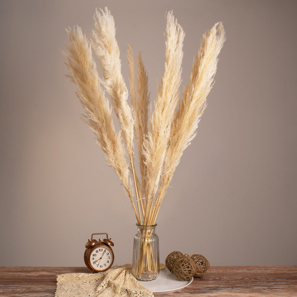 GLOBOSTAR® PAMPASGRASS 36507 Αποξηραμένο Διακοσμητικό Μπουκέτο Γρασίδι της Πάμπας - Μπεζ - Μ20 x Π20 x Υ100cm - Πακέτο 10 Τεμαχίων