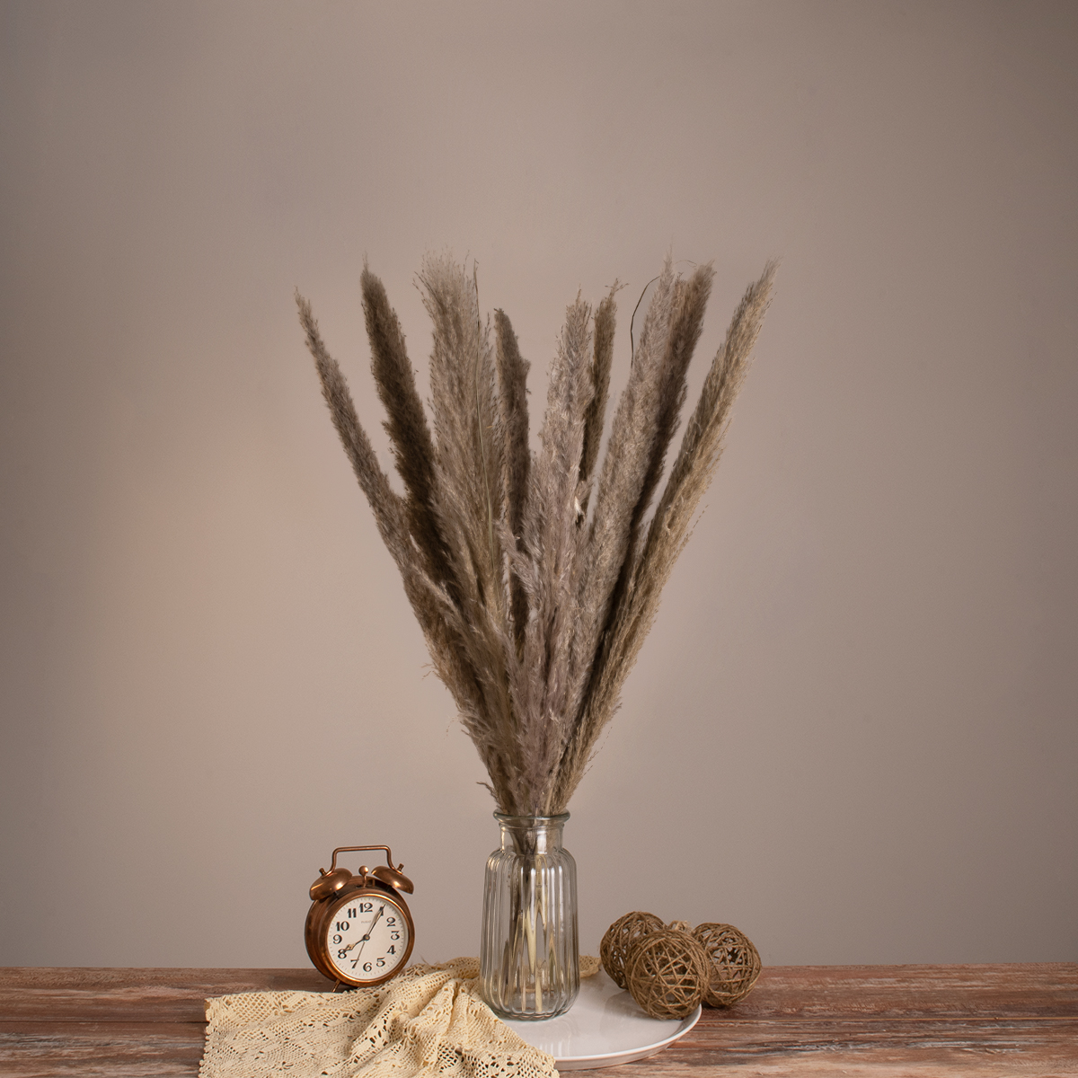 GloboStar® PAMPASGRASS 36511 Αποξηραμένο Φυτό Γρασίδι της Πάμπας - Μπουκέτο Διακοσμητικών Κλαδιών Καφέ - Γκρι Υ80cm - Σετ 10 τμχ