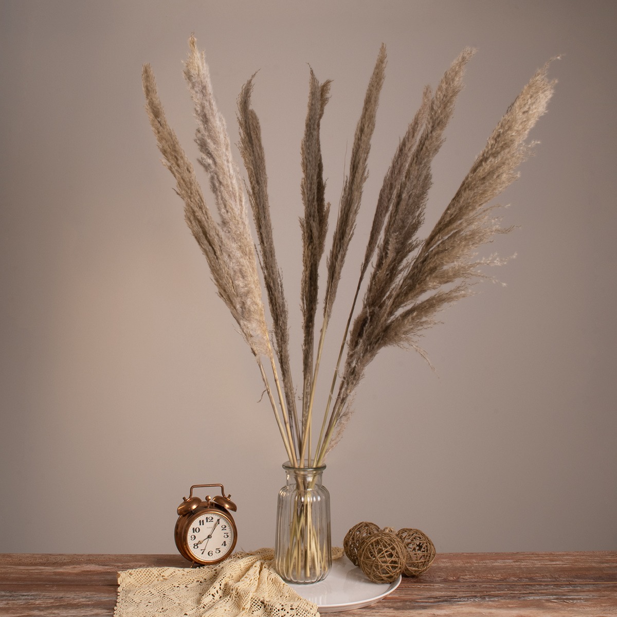 GloboStar® PAMPASGRASS 36512 Αποξηραμένο Φυτό Γρασίδι της Πάμπας - Μπουκέτο Διακοσμητικών Κλαδιών Καφέ - Γκρι Υ100cm - Σετ 10 τμχ