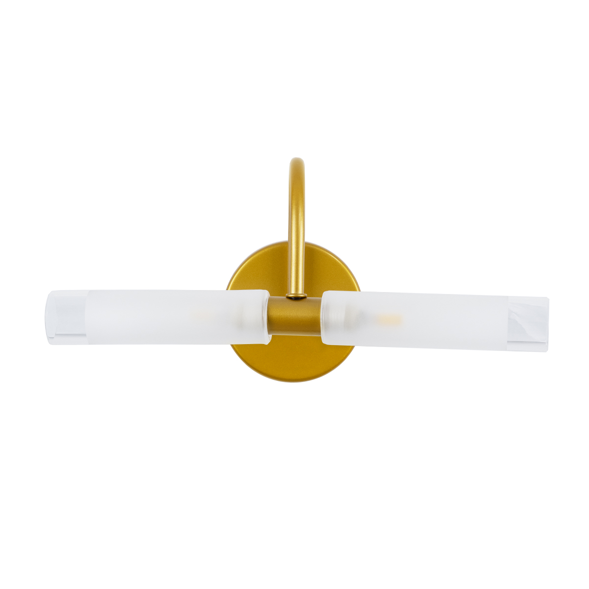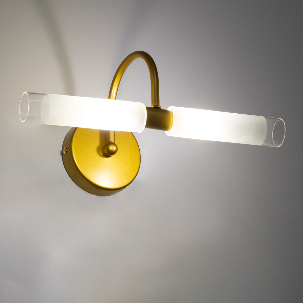 GLOBOSTAR® PAOLA 60417 Μοντέρνο Φωτιστικό Τοίχου - Απλίκα Καθρέπτη Μπάνιου με Ντουί 2 x G9 AC 220-240V IP20 - Χρυσό Βούρτσας - Μ31 x Π16 x Υ15cm