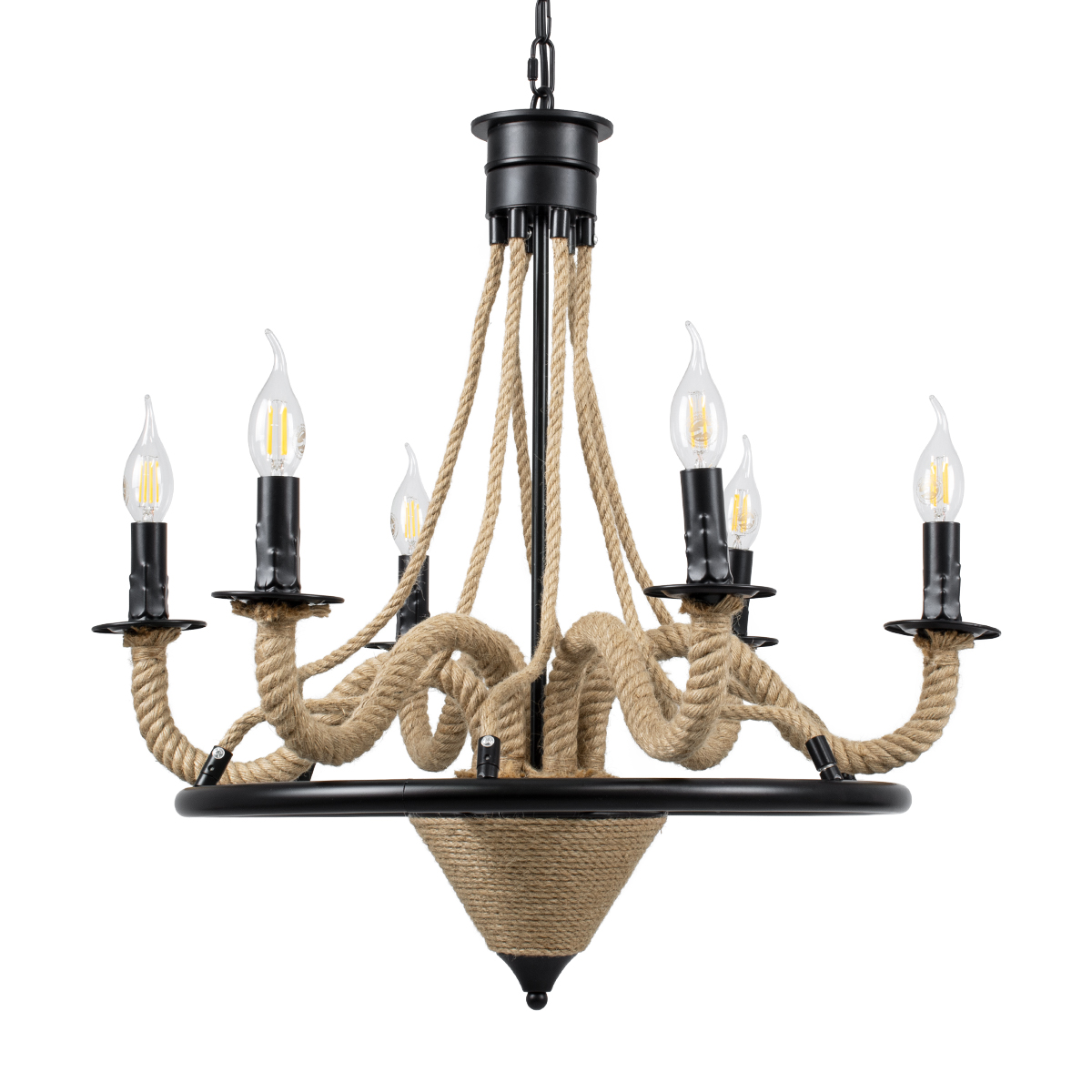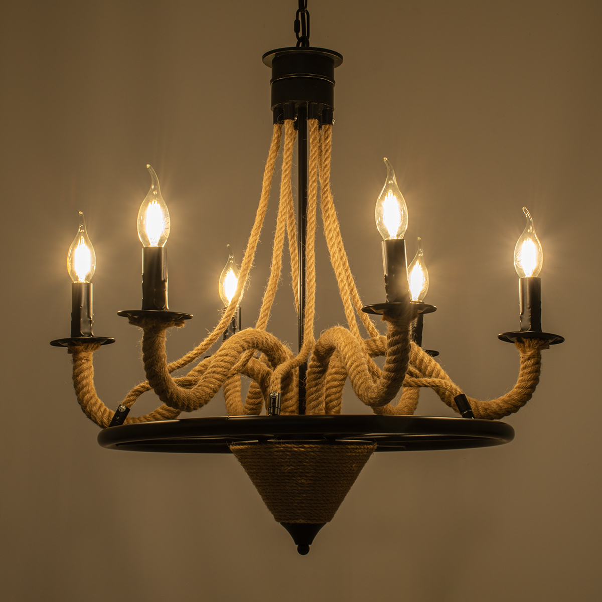 GLOBOSTAR® PENNSYLVANIA 00541 Vintage Κρεμαστό Φωτιστικό Οροφής με Ντουί 6 x E14 AC 220-240V IP20 - Μαύρο & Μπεζ - Μ64 x Π64 x Υ63cm