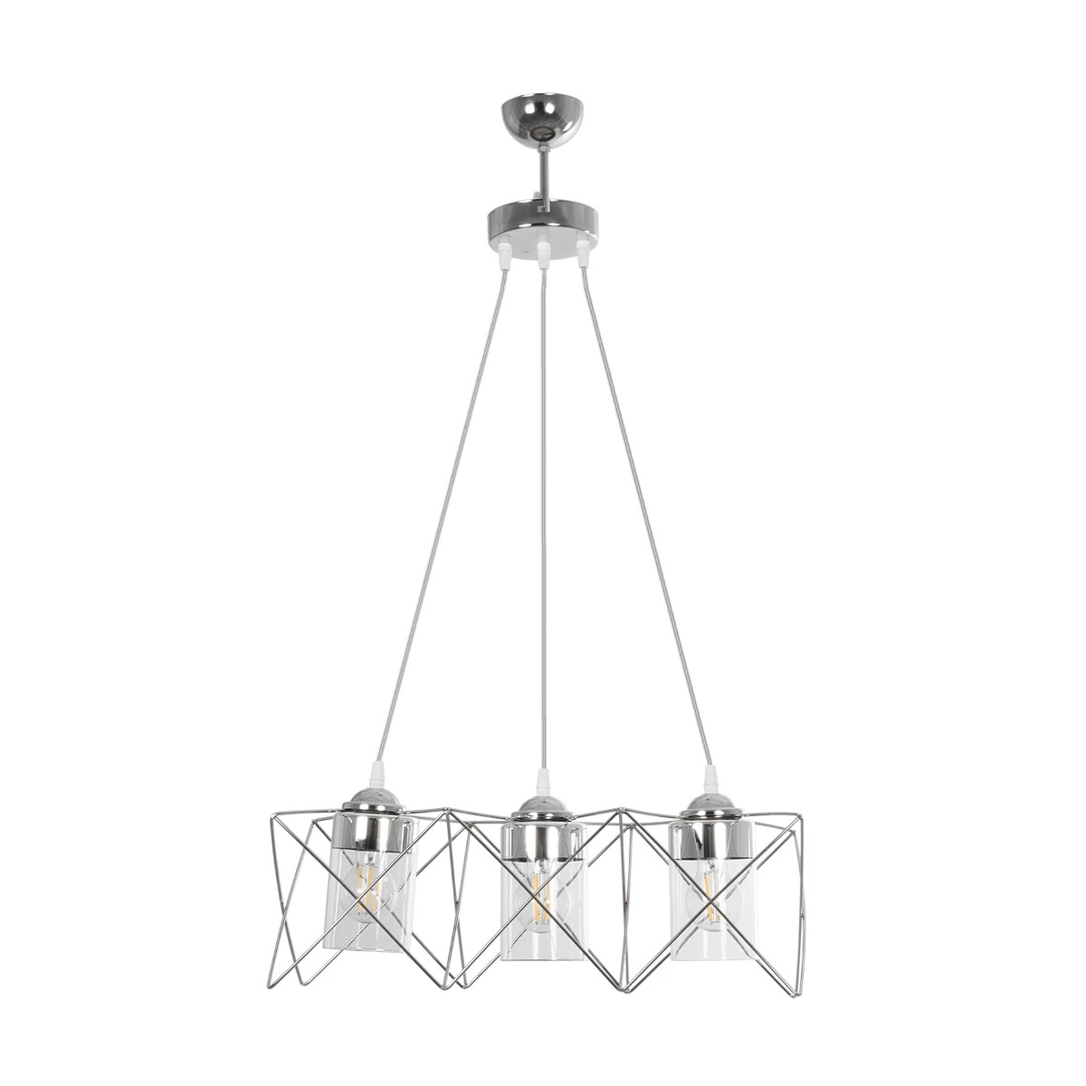 GLOBOSTAR® PLEX 202-0039 Μοντέρνο Κρεμαστό Φωτιστικό Οροφής με Ντουί 3 x E27 AC 220-240V IP20 - Ασημί & Διάφανο - Μ56 x Π17 x Υ24cm