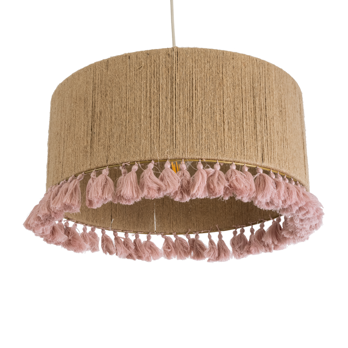 GLOBOSTAR® PUERTORICO 02096 Boho Κρεμαστό Φωτιστικό Οροφής με Ντουί 1 x E27 AC 220-240V IP20 - Μπεζ & Ροζ - Μ50 x Π50 x Υ27cm