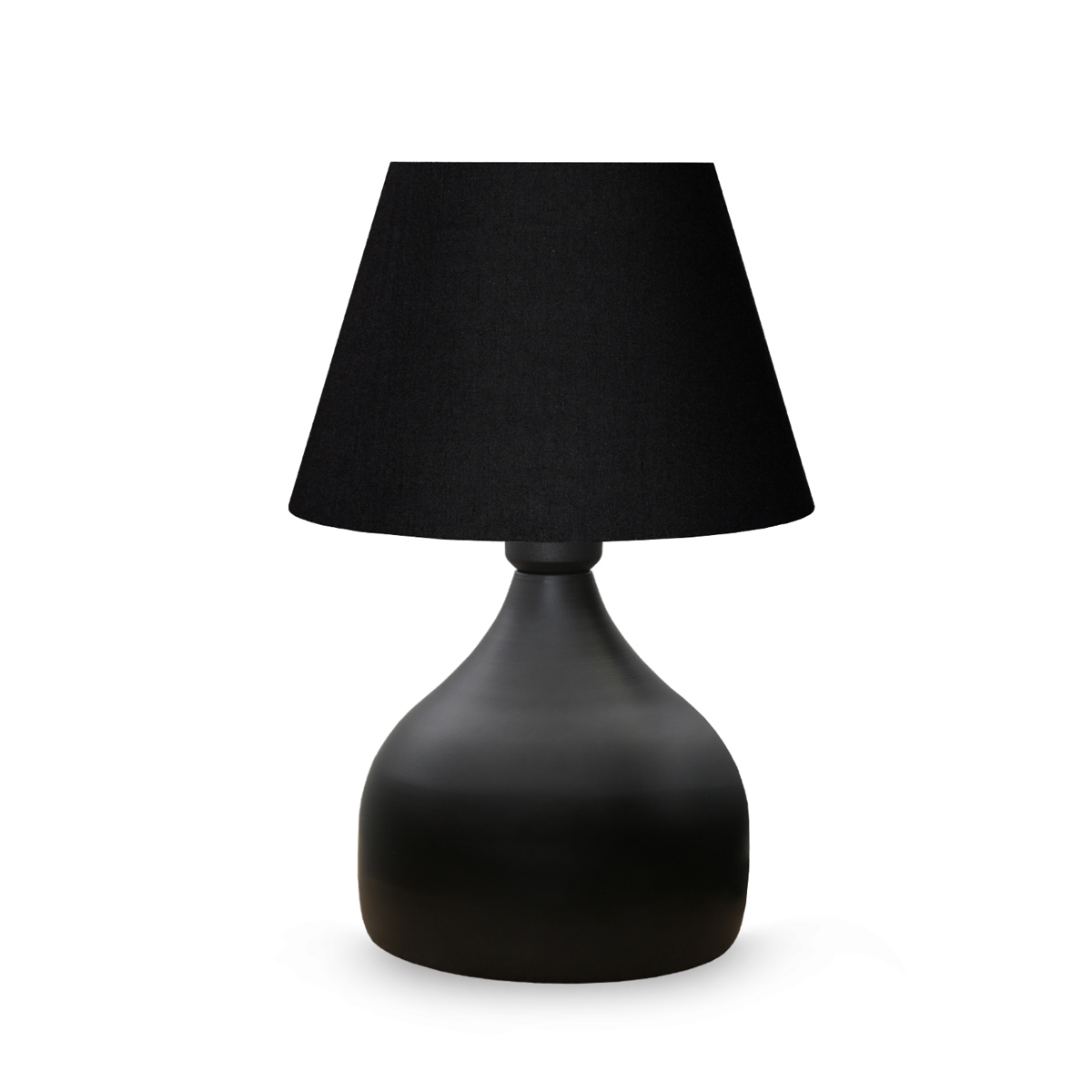 GloboStar® PYRAMID 204-0058 Μοντέρνο Eπιτραπέζιο Φωτιστικό Πορτατίφ Μονόφωτο 1 x E27 IP20 Μαύρο Μέταλλο με Μαύρο Ύφασμα - Μ22 x Π22 x Υ30cm