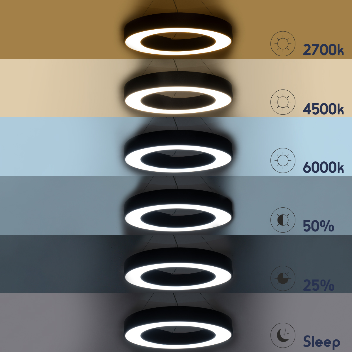 GLOBOSTAR® RA 61194 Μοντέρνο Κρεμαστό Φωτιστικό Οροφής LED 67W 7370lm 120° AC 220-240V IP20 Ρυθμιζόμενο Λευκό CCT με Χειριστήριο από 2700K έως 6000K Dimmable - Lumileds SMD Chip - Μαύρο Ματ - Μ60 x Π60 x Υ8cm - 3 Χρόνια Εγγύηση