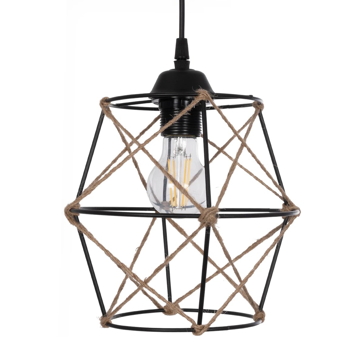 GLOBOSTAR® RAYLO 201-0048 Vintage Κρεμαστό Φωτιστικό Οροφής με Ντουί 3 x E27 AC 220-240V IP20 - Μαύρο & Μπεζ - Μ44 x Π44 x Υ73cm