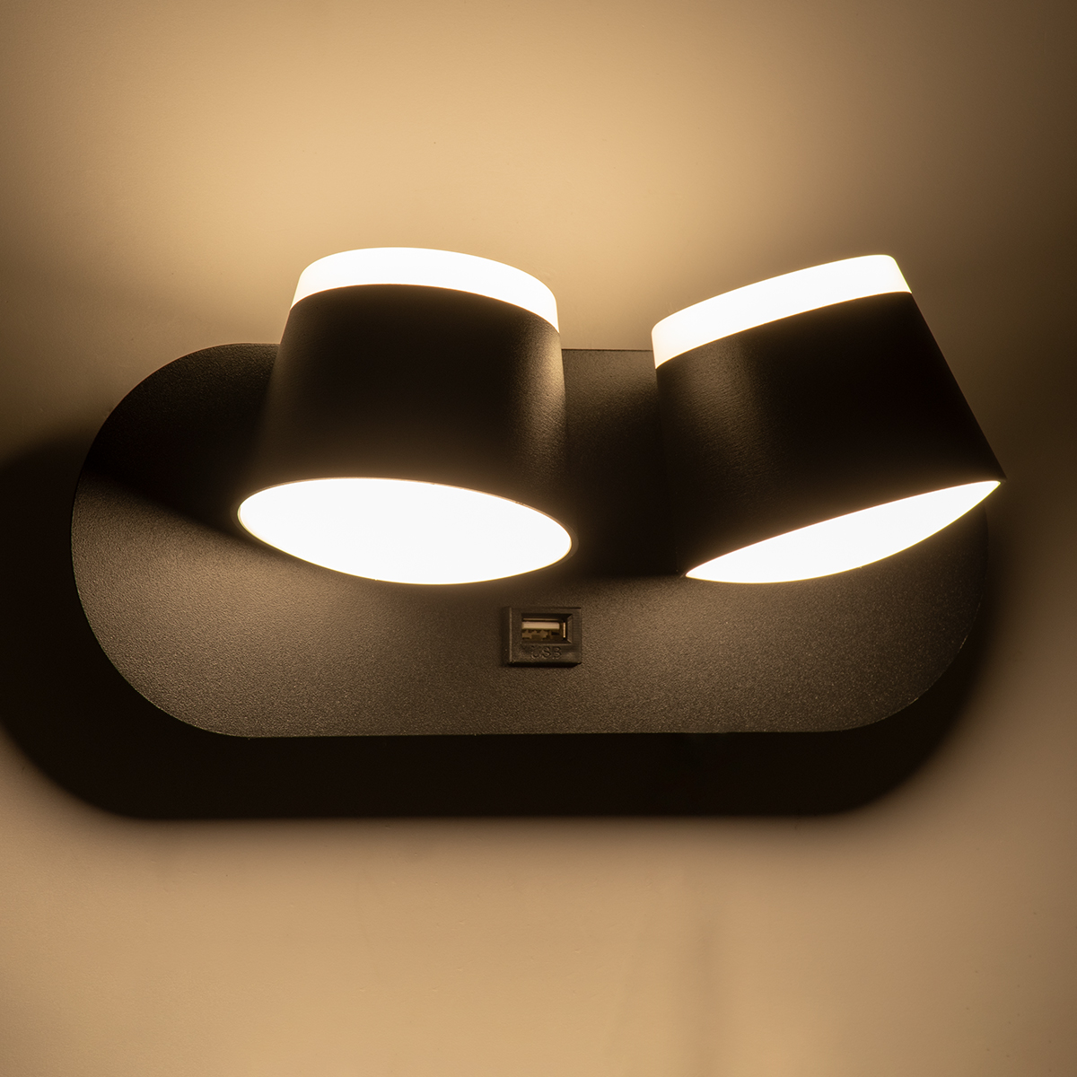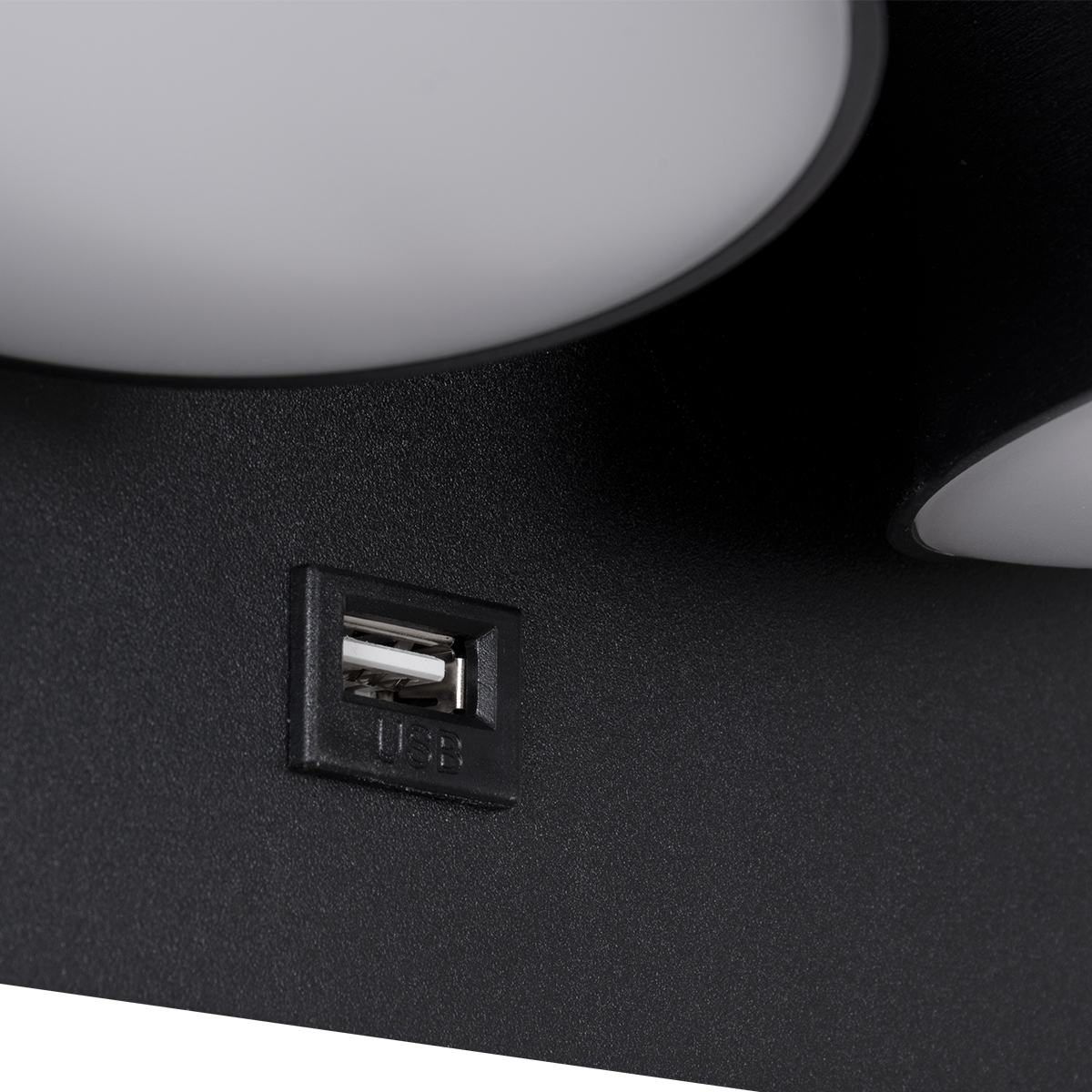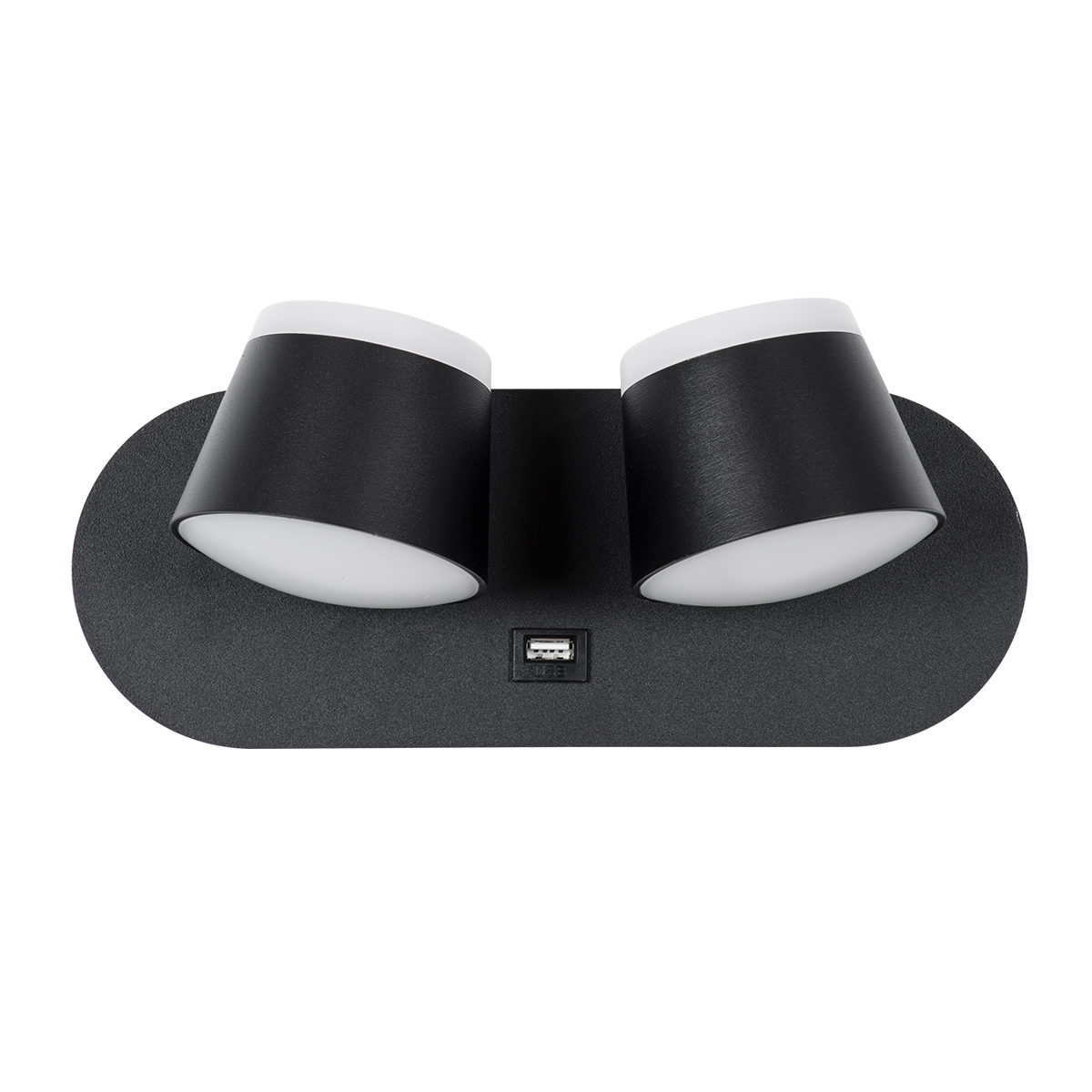 GLOBOSTAR® REGENCY 61376 Μοντέρνο Φωτιστικό Τοίχου - Απλίκα Ξενοδοχείου Reading Light με Φορτιστή USB 3A LED 16W 1840lm 120° AC 220-240V IP20 Φυσικό Λευκό 4500K - Bridgelux SMD Chip & TÜV SÜD Driver - Μαύρο Ματ - Μ16.5 x Π12 x Υ10cm - 3 Χρόνια Εγγύηση
